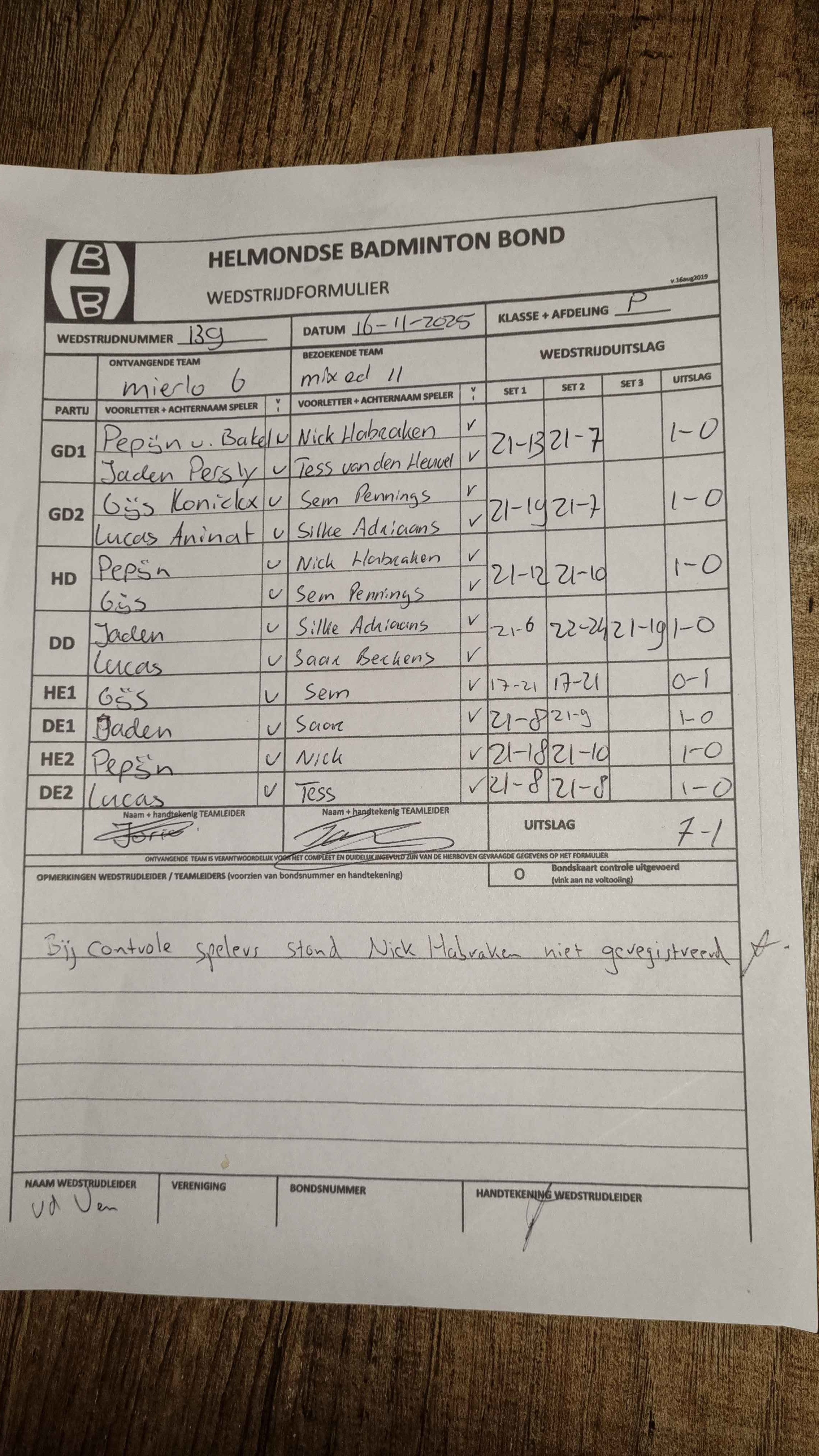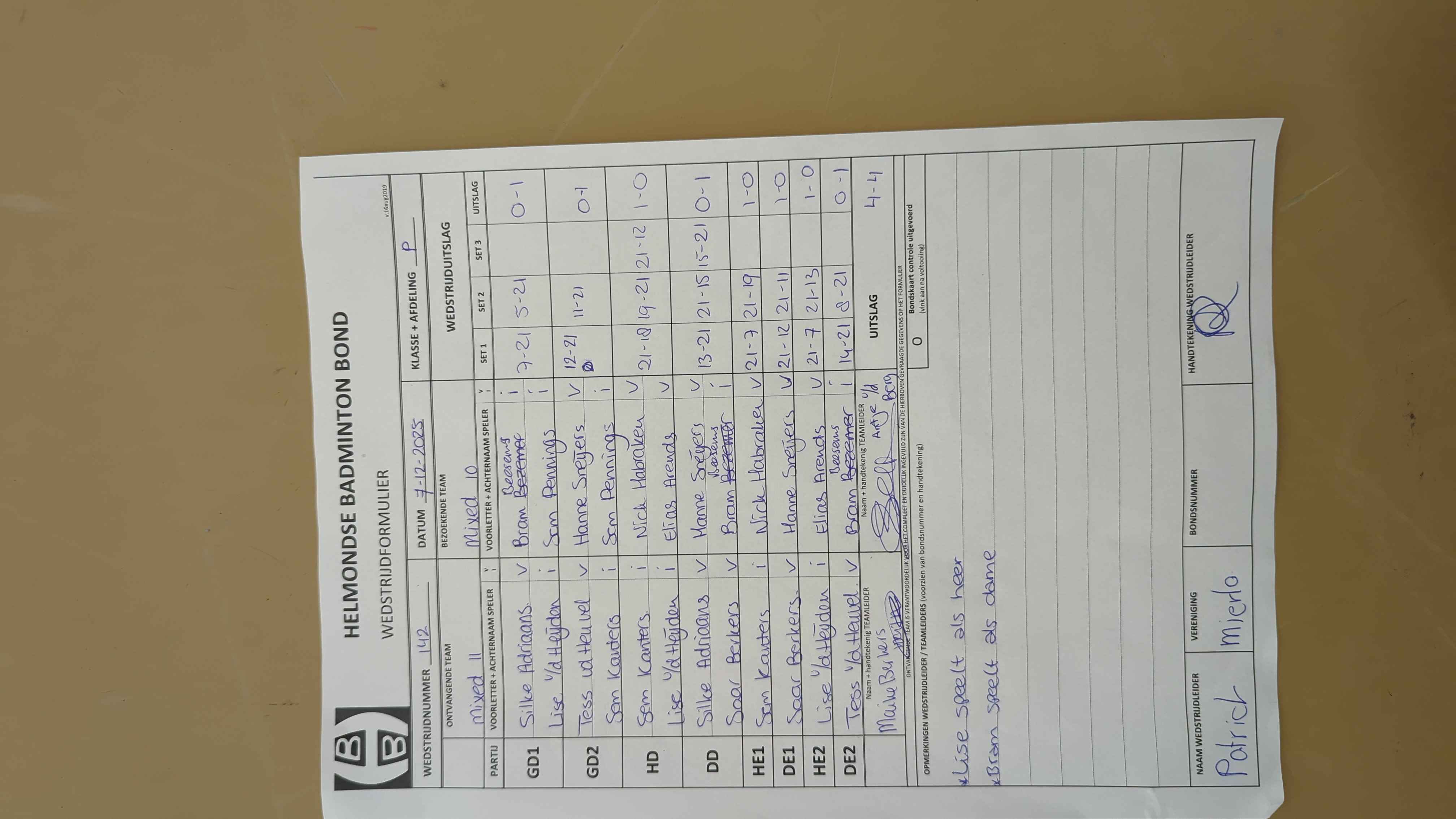| 09:30 | zo. 16-11-2025 | Mierlo 6 | - | Mixed 11 | 10 | - | ||