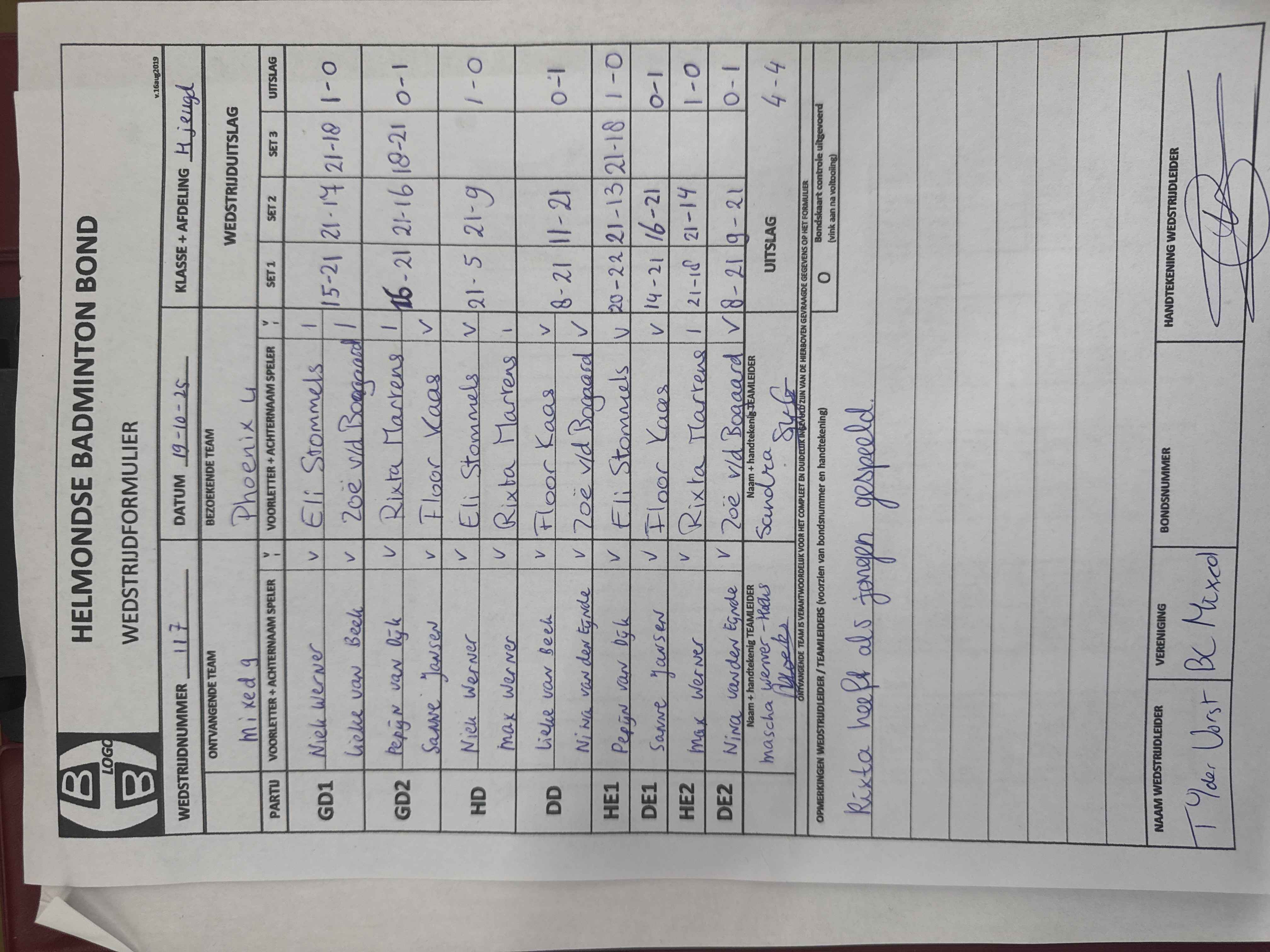 | 09:30 | zo. 19-10-2025 | Mixed 9 | - | Phoenix 4 | 5 | 4 - 4 | ||