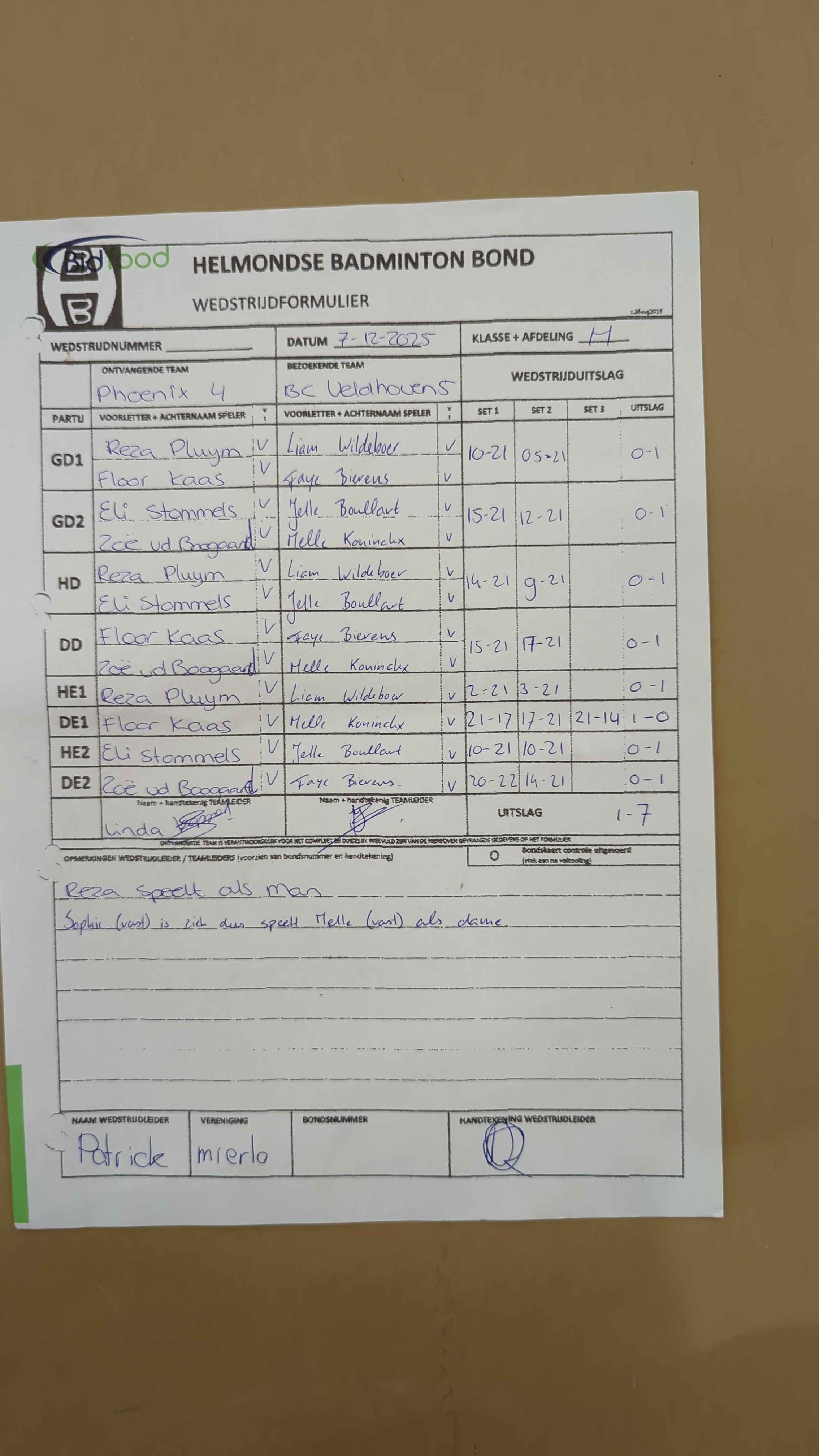| 09:30 | zo. 21-09-2025 | Phoenix 4 | - | Nuenen 4 | 10 | 1 - 7 | ||