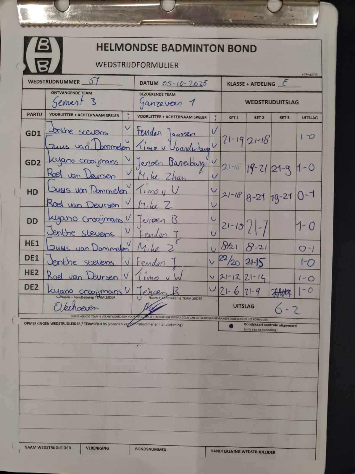 | 09:30 | zo. 28-09-2025 | Gemert 3 | - | Mixed 5 | 5 | 6 - 2 | ||