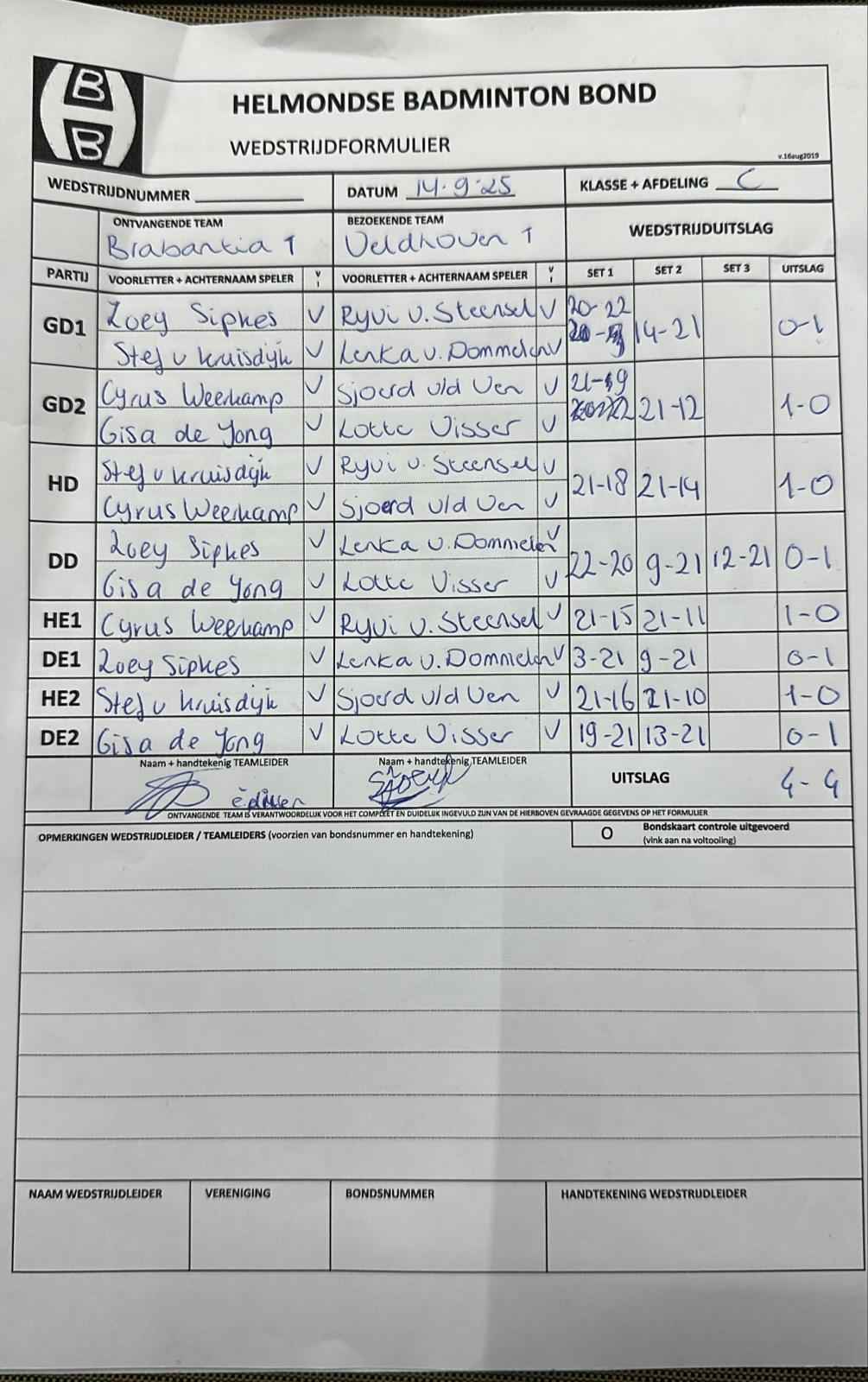 | 09:30 | zo. 14-09-2025 | Brabantia 1 | - | Veldhoven 1 | 5 | 4 - 4 | ||