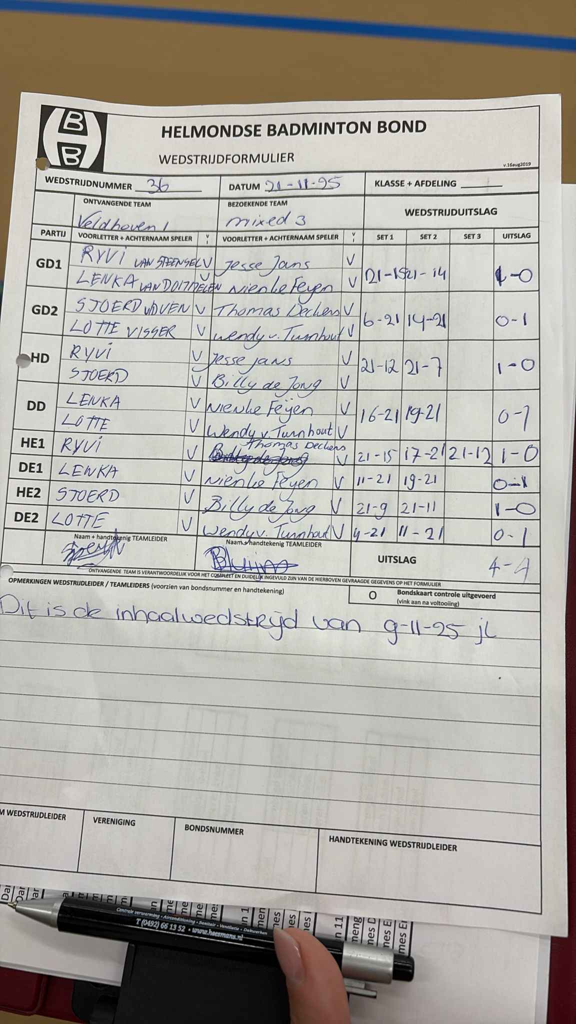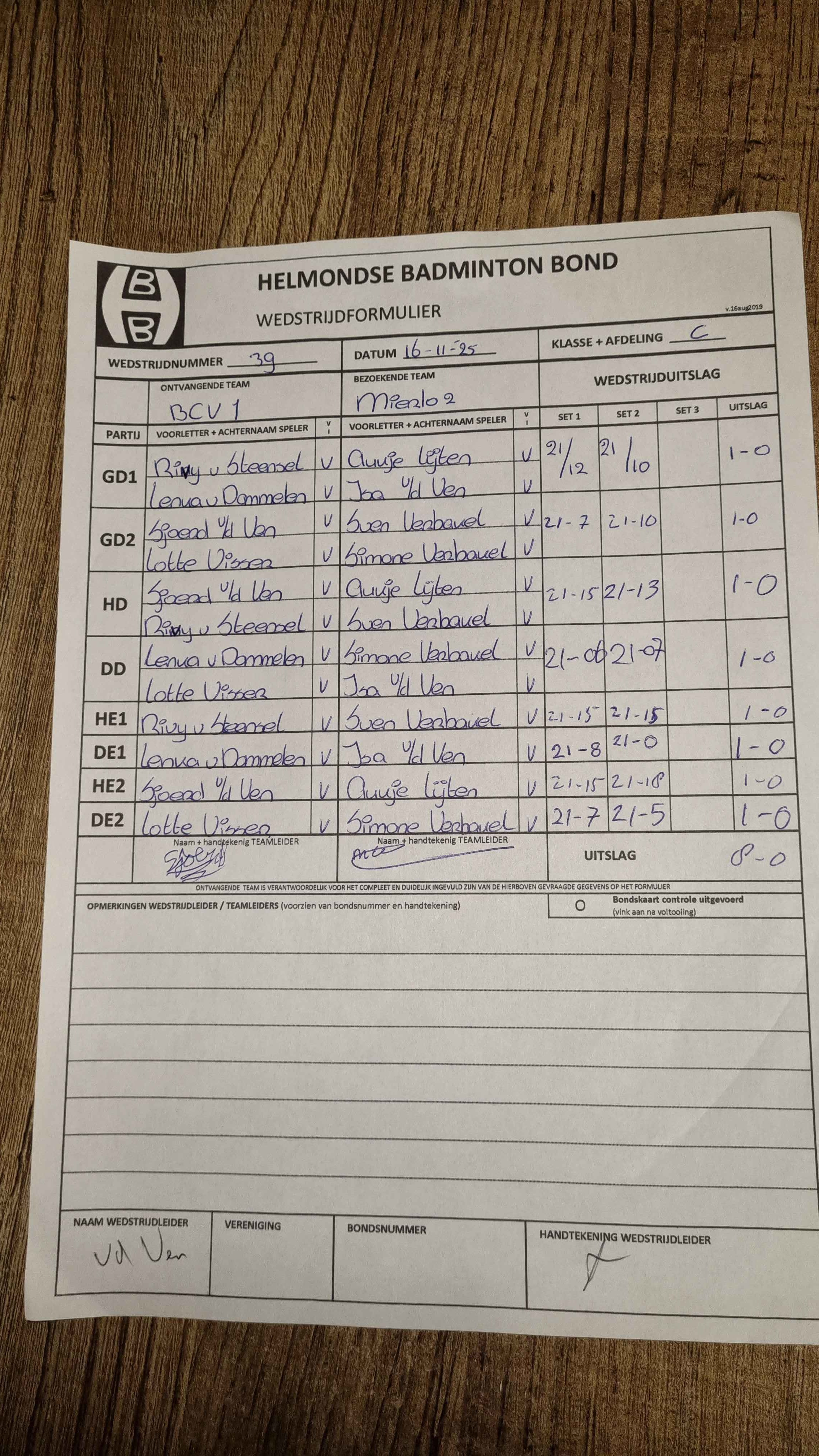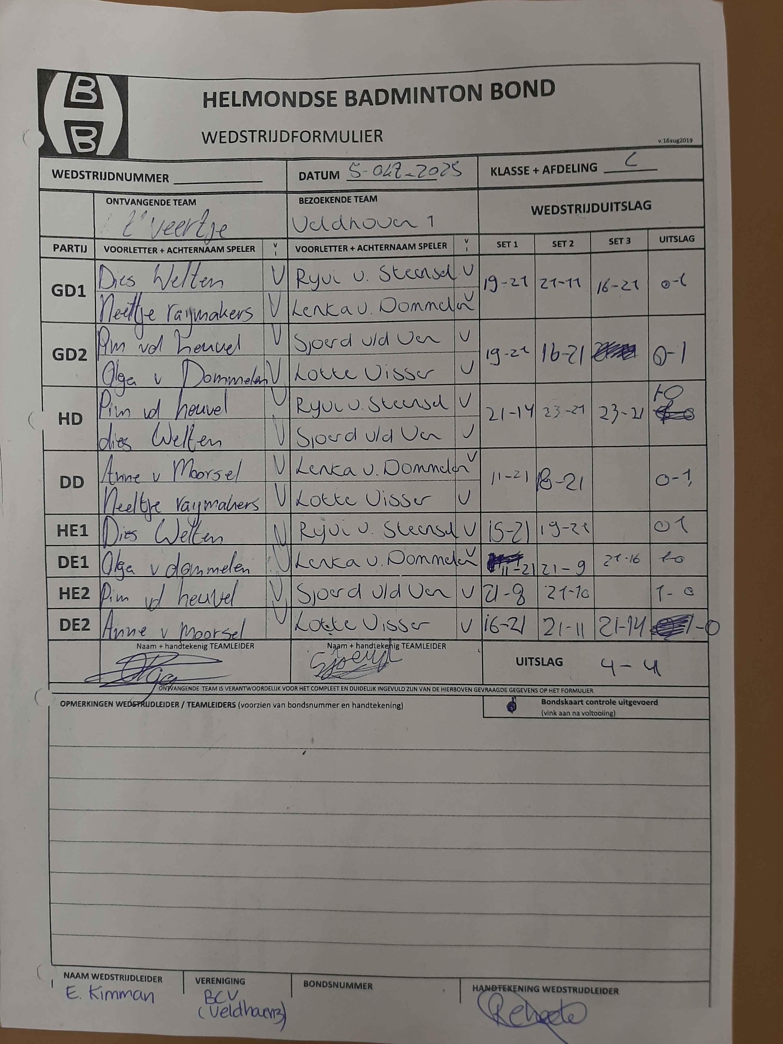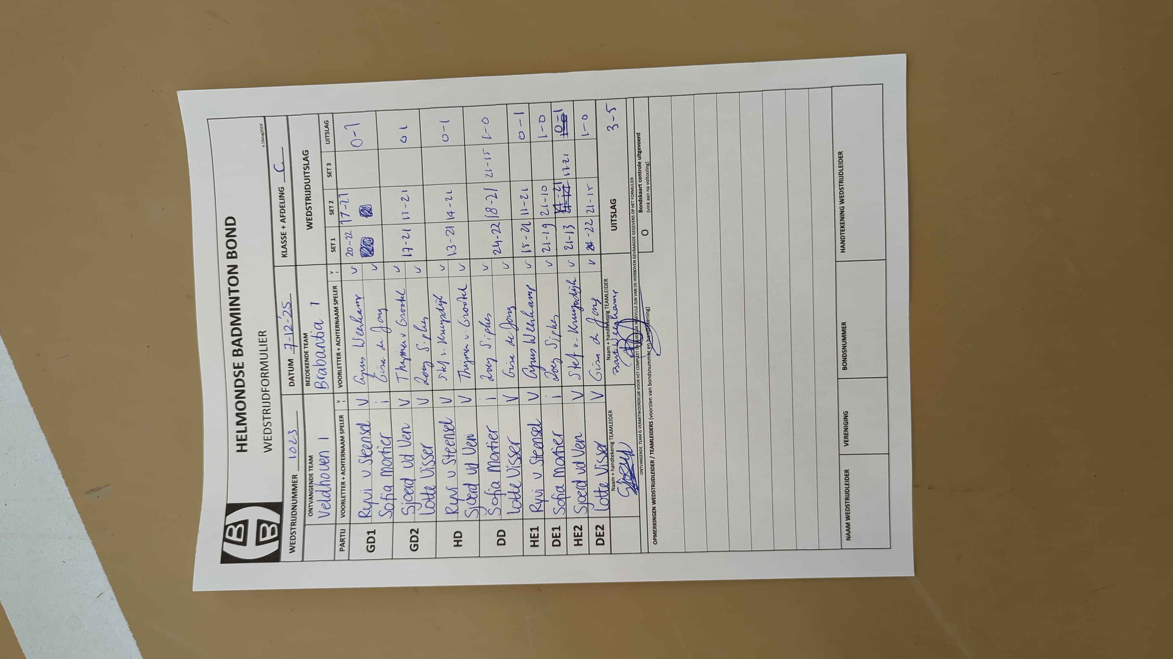 | 12:30 | zo. 09-11-2025 | Veldhoven 1 | - | Mixed 3 | 2 | - | ||
