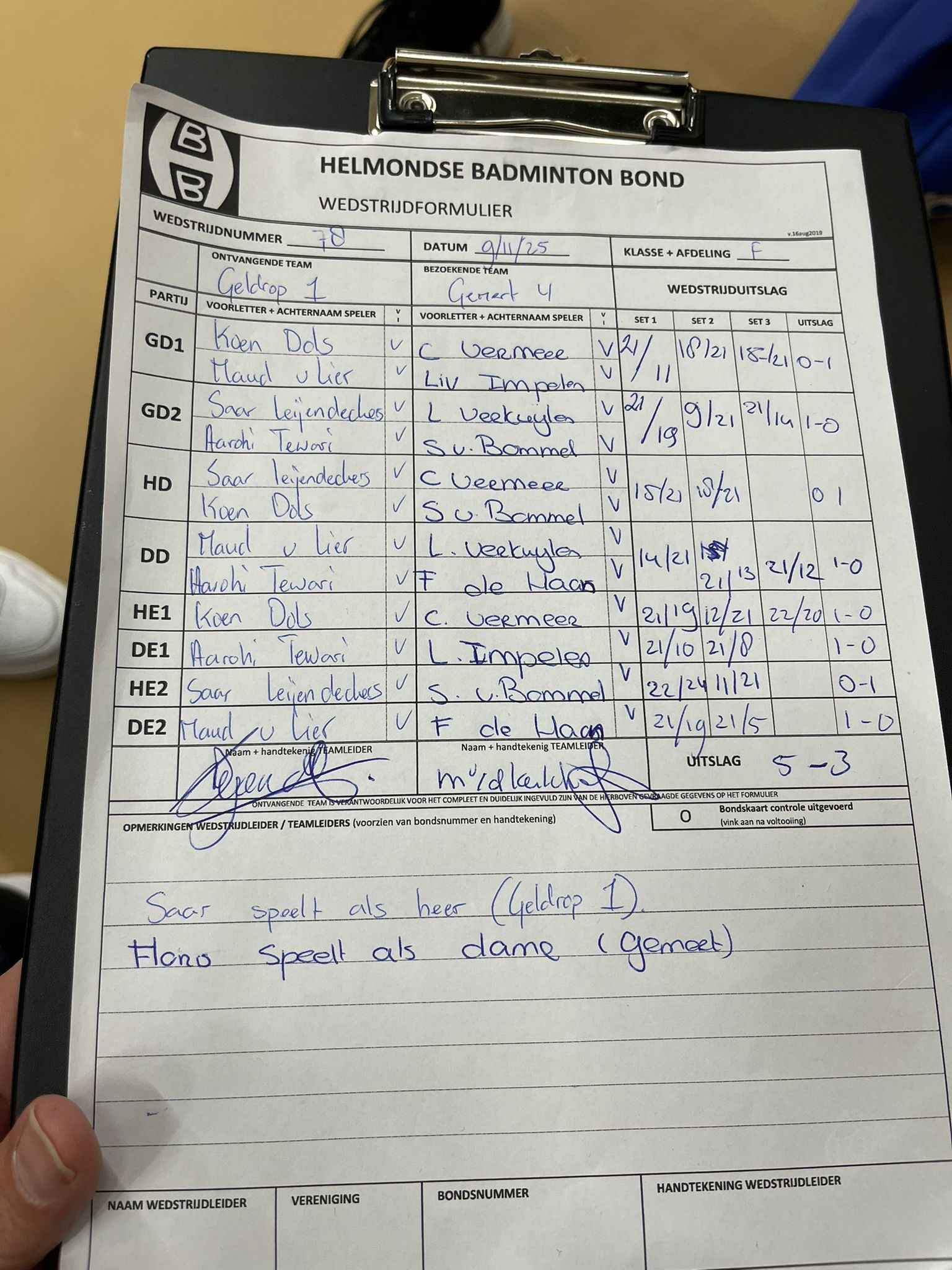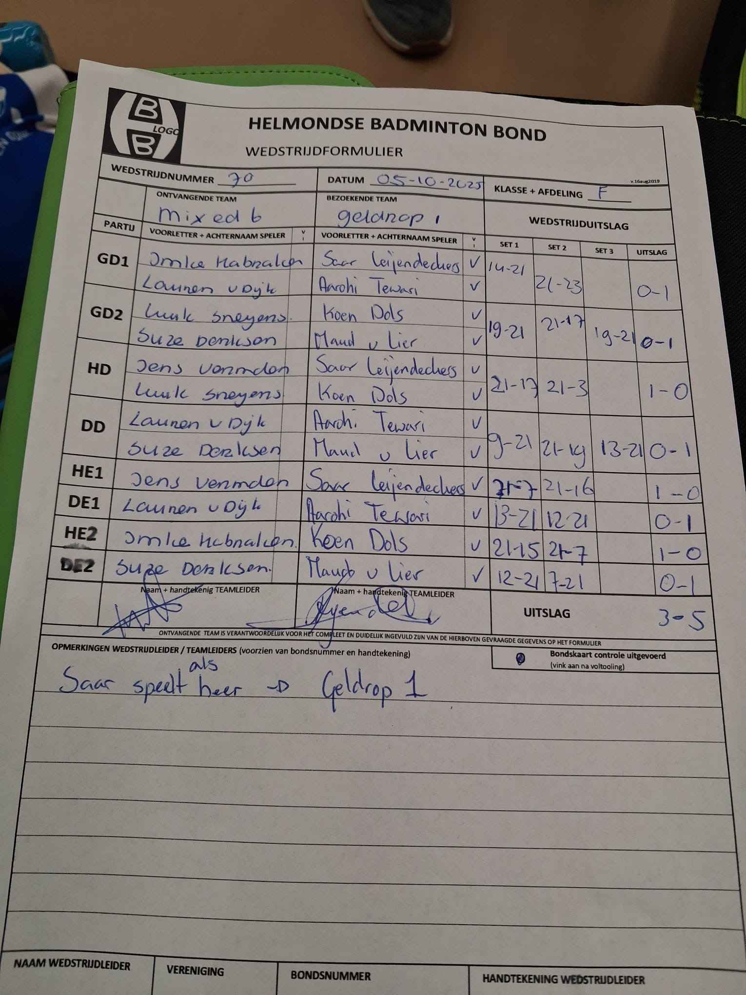 | 09:30 | zo. 05-10-2025 | Mixed 6 | - | Geldrop 1 | 13 | 3 - 5 | ||