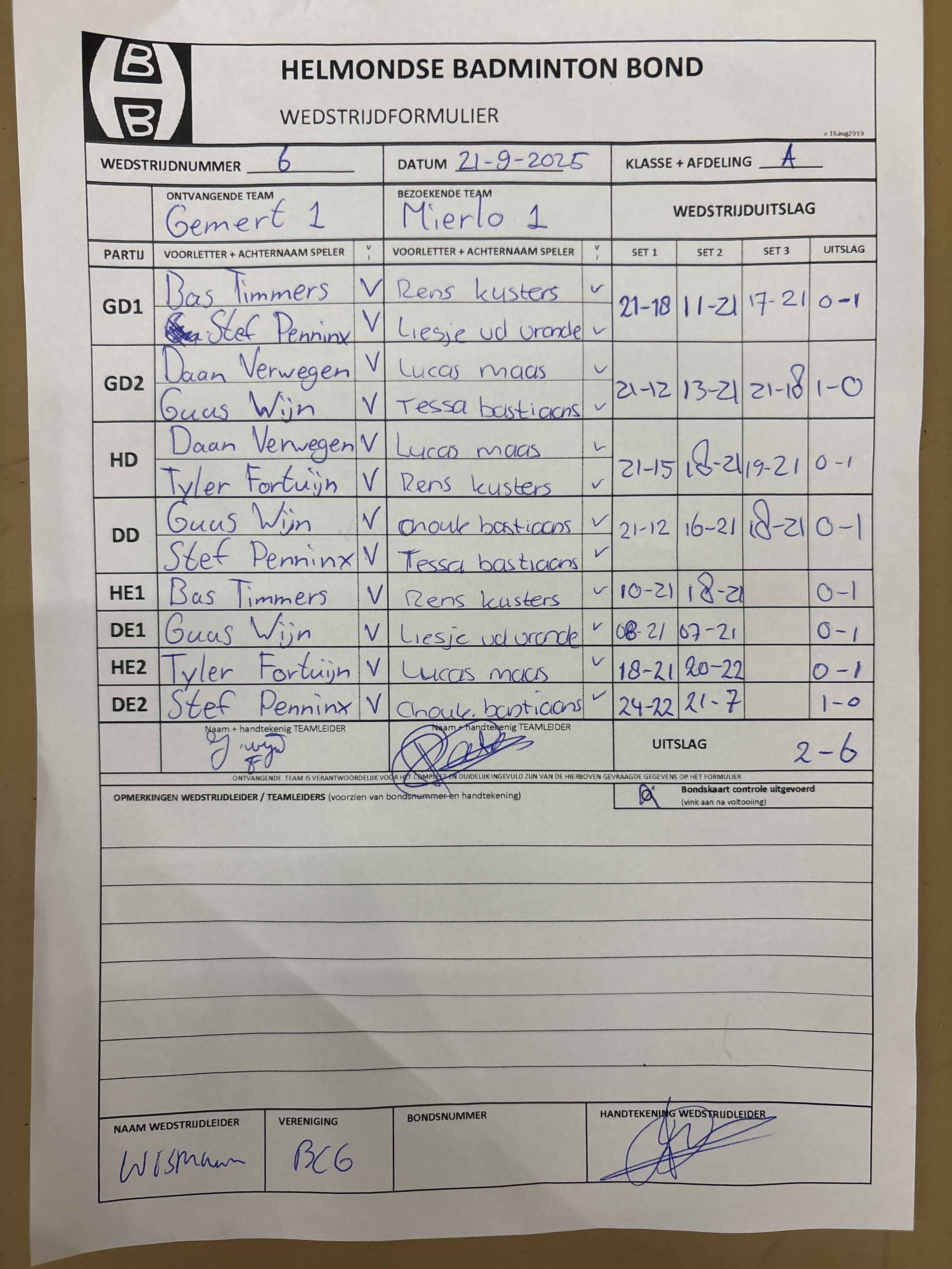 | 09:30 | zo. 30-11-2025 | Mixed 2 | - | Mierlo 1 | 4 | - | ||