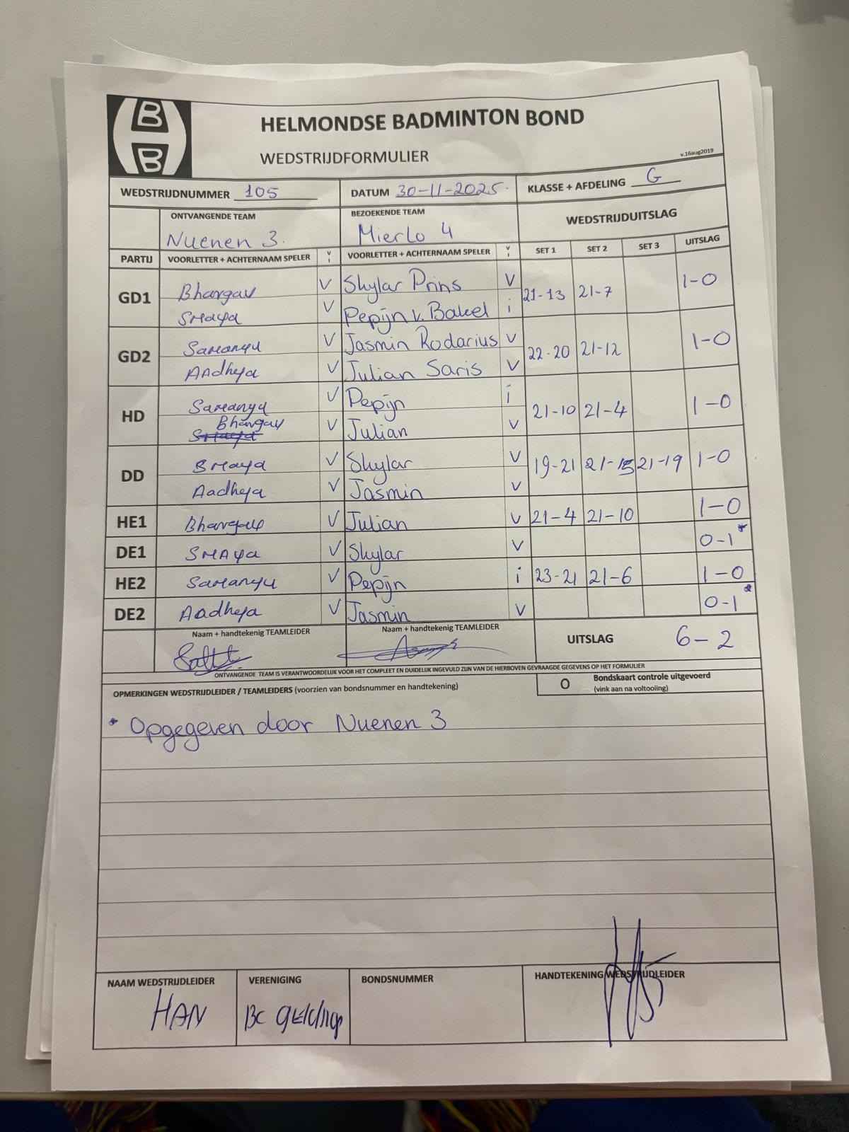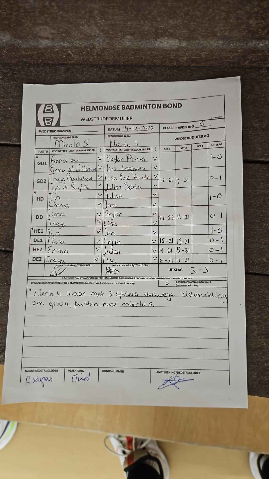 | 09:30 | zo. 28-09-2025 | Mixed 7 | - | Mierlo 4 | 12 | 5 - 3 | ||
