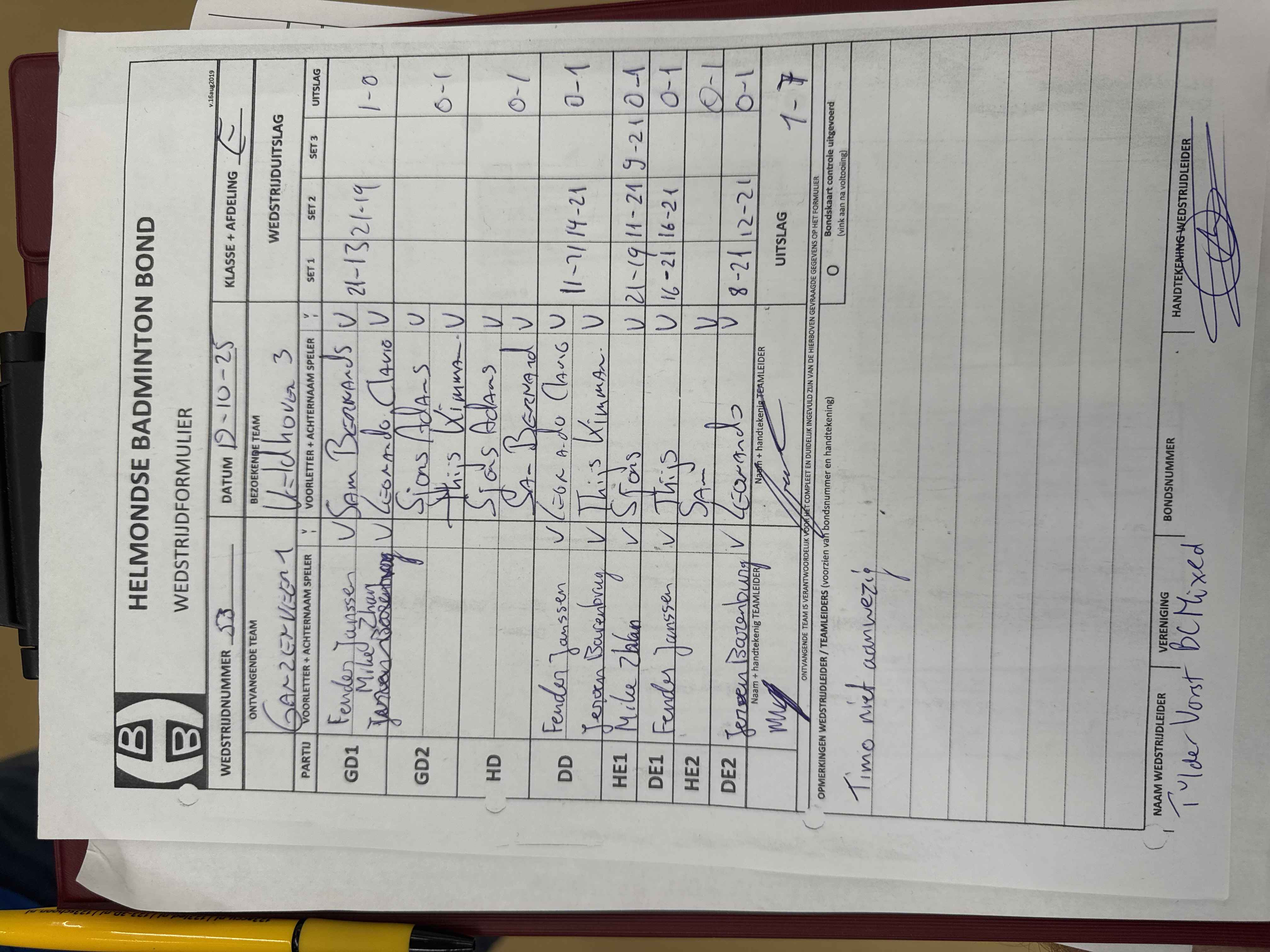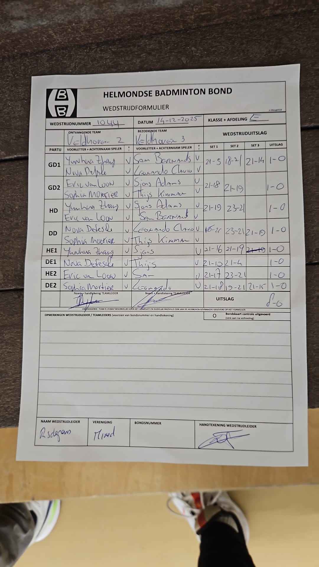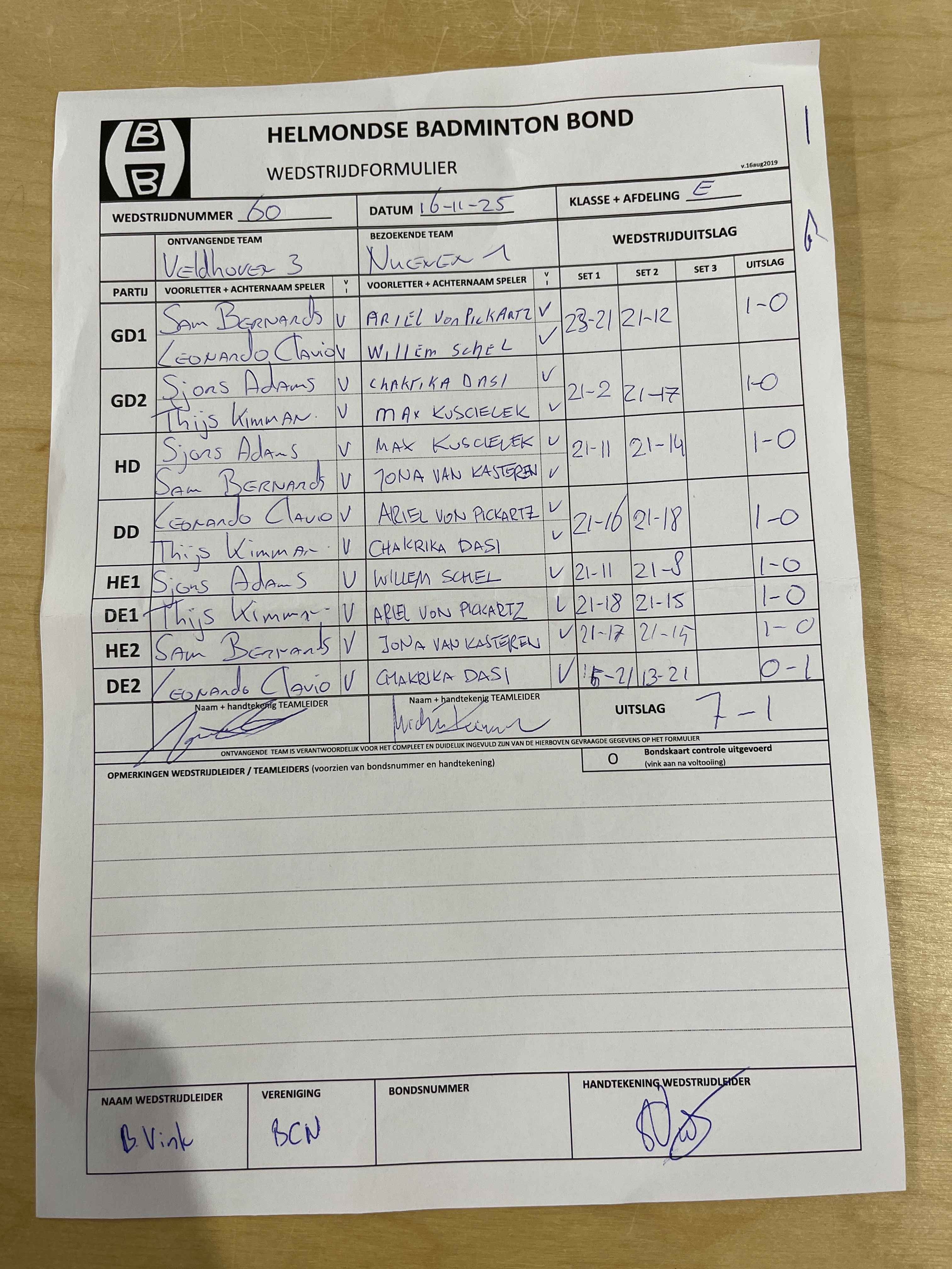 | 09:30 | zo. 30-11-2025 | Mixed 5 | - | Veldhoven 3 | 3 | - | ||