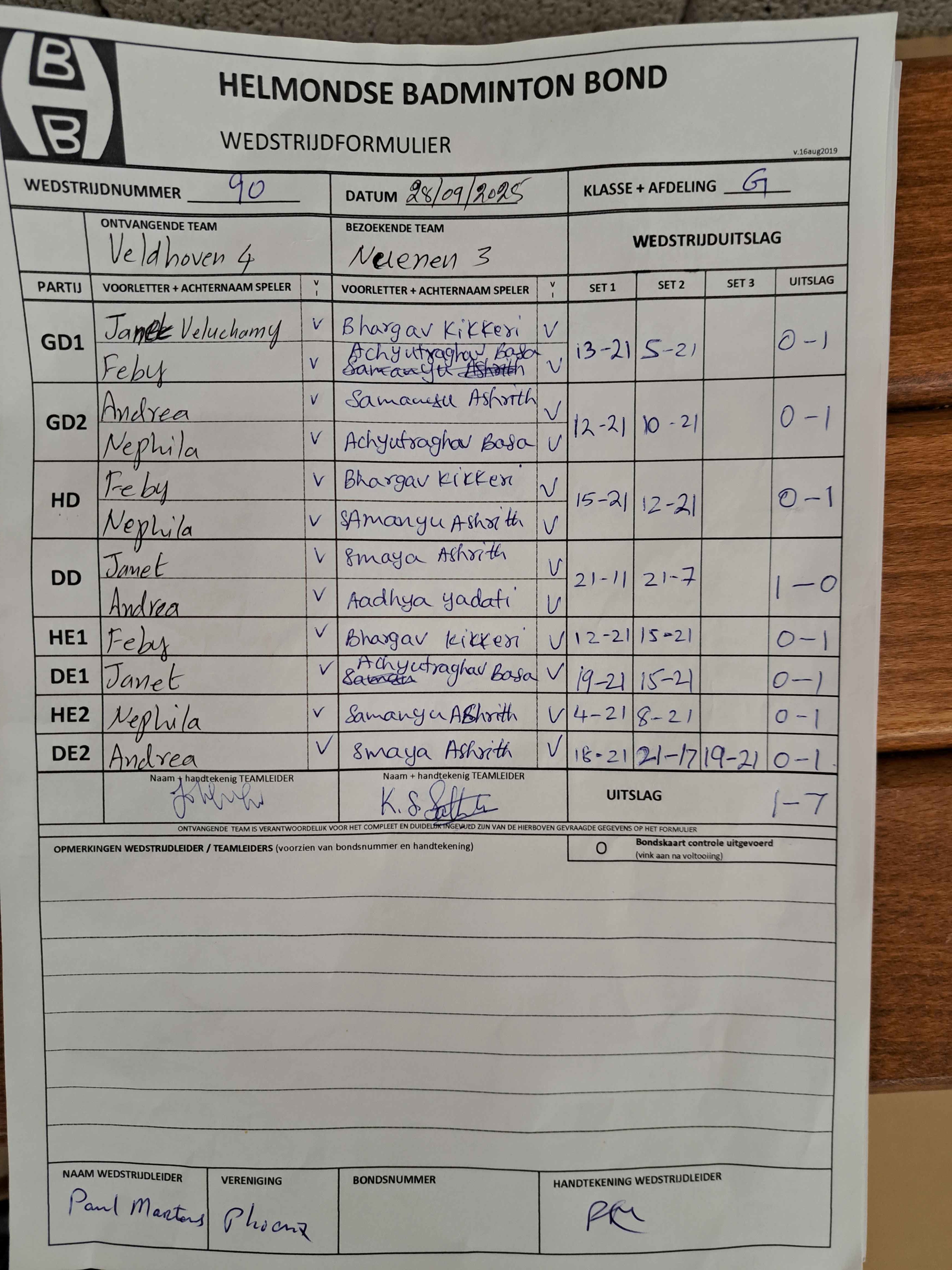 | 09:30 | zo. 21-09-2025 | Nuenen 3 | - | Phoenix 3 | 14 | 7 - 1 | ||
