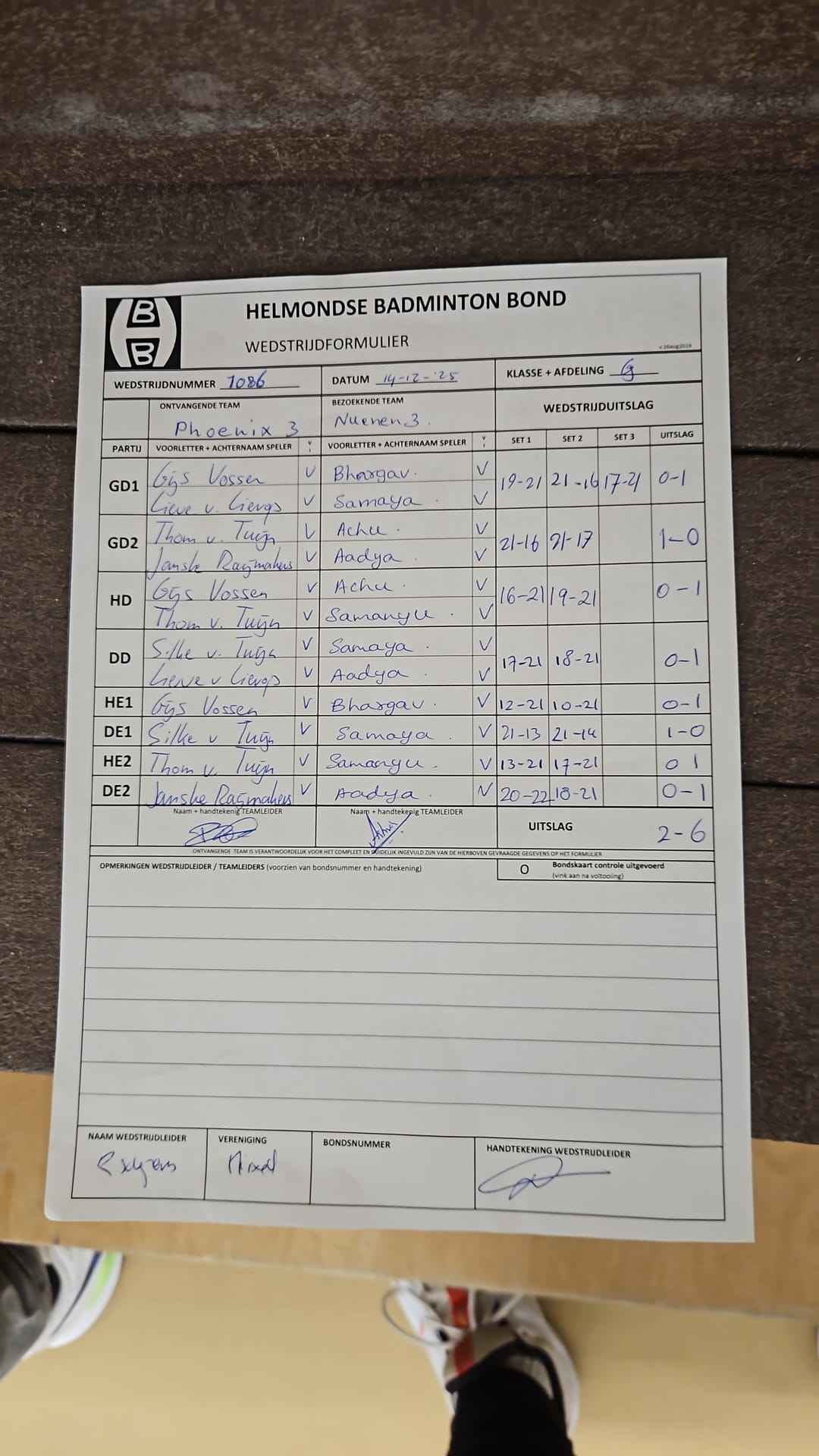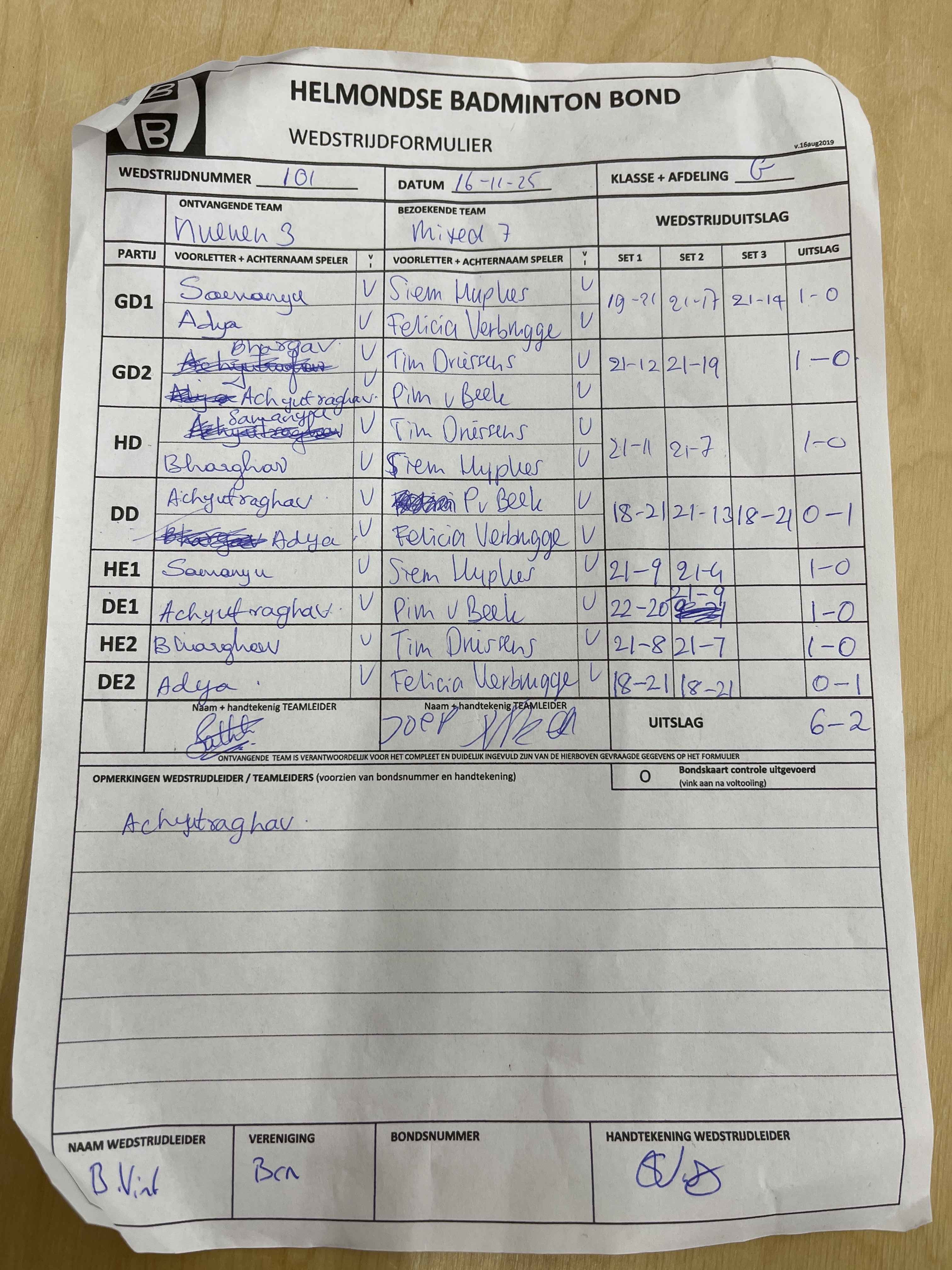 | 12:30 | zo. 16-11-2025 | Nuenen 3 | - | Mixed 7 | 13 | - | ||