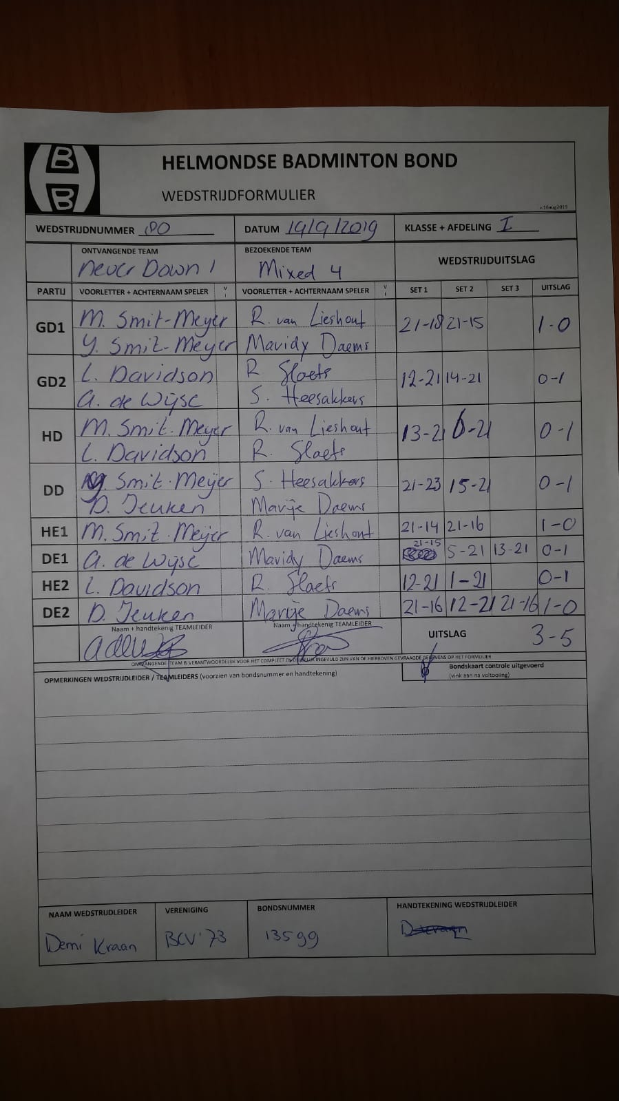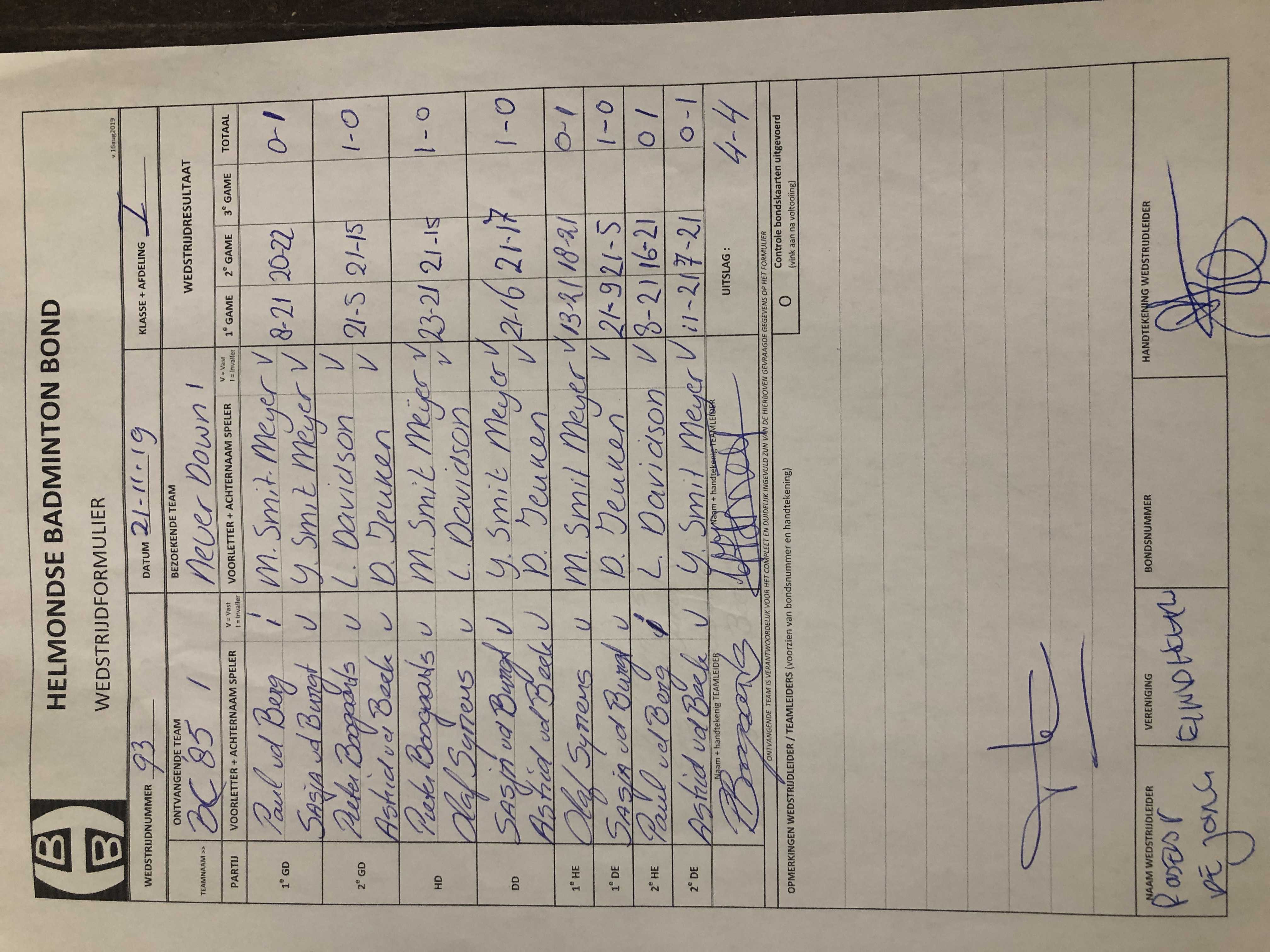 | 93 | do. 21-11-2019 | BC '85 1 | - | Never Down 1 | 5 | 4 - 4 | |||