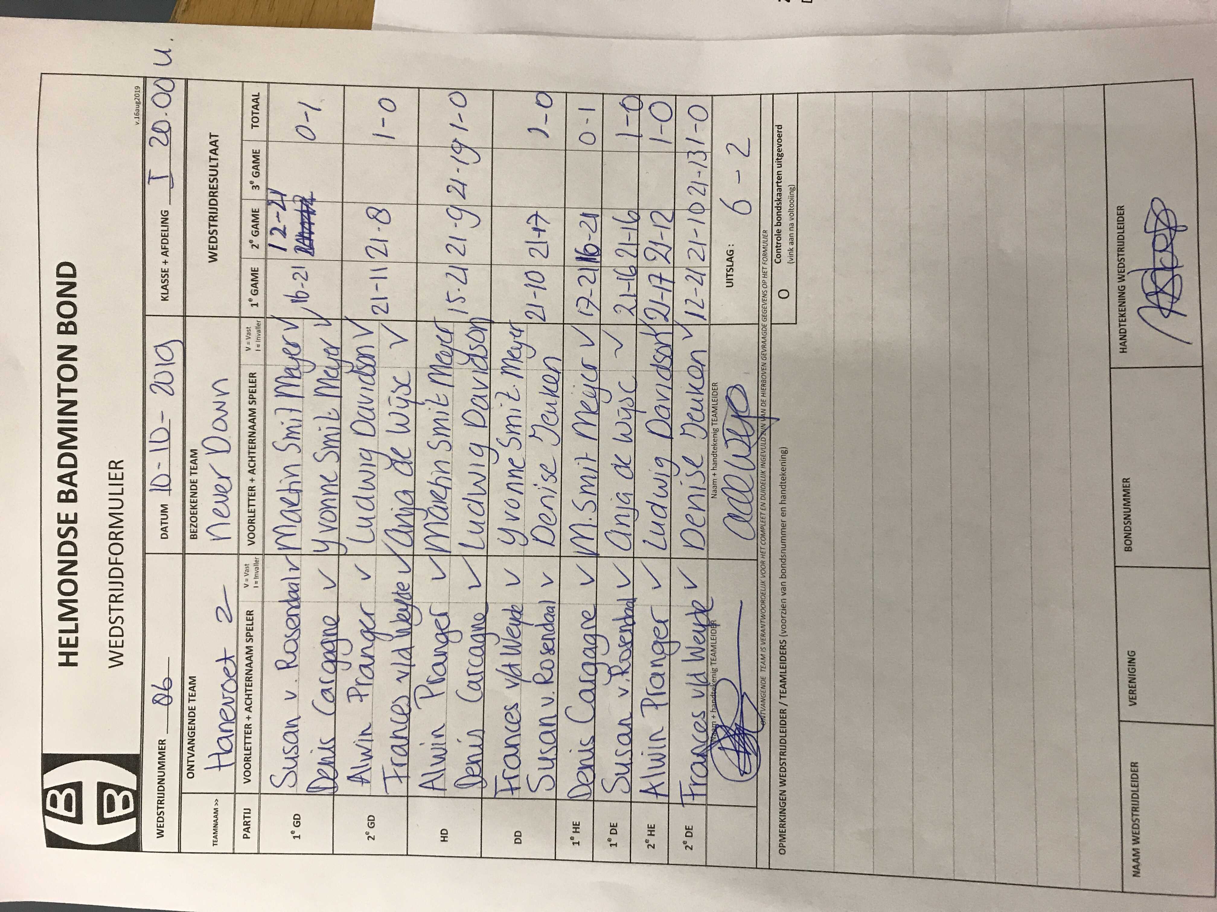 | 86 | do. 10-10-2019 | Hanevoet 2 | - | Never Down 1 | 13 | 6 - 2 | |||