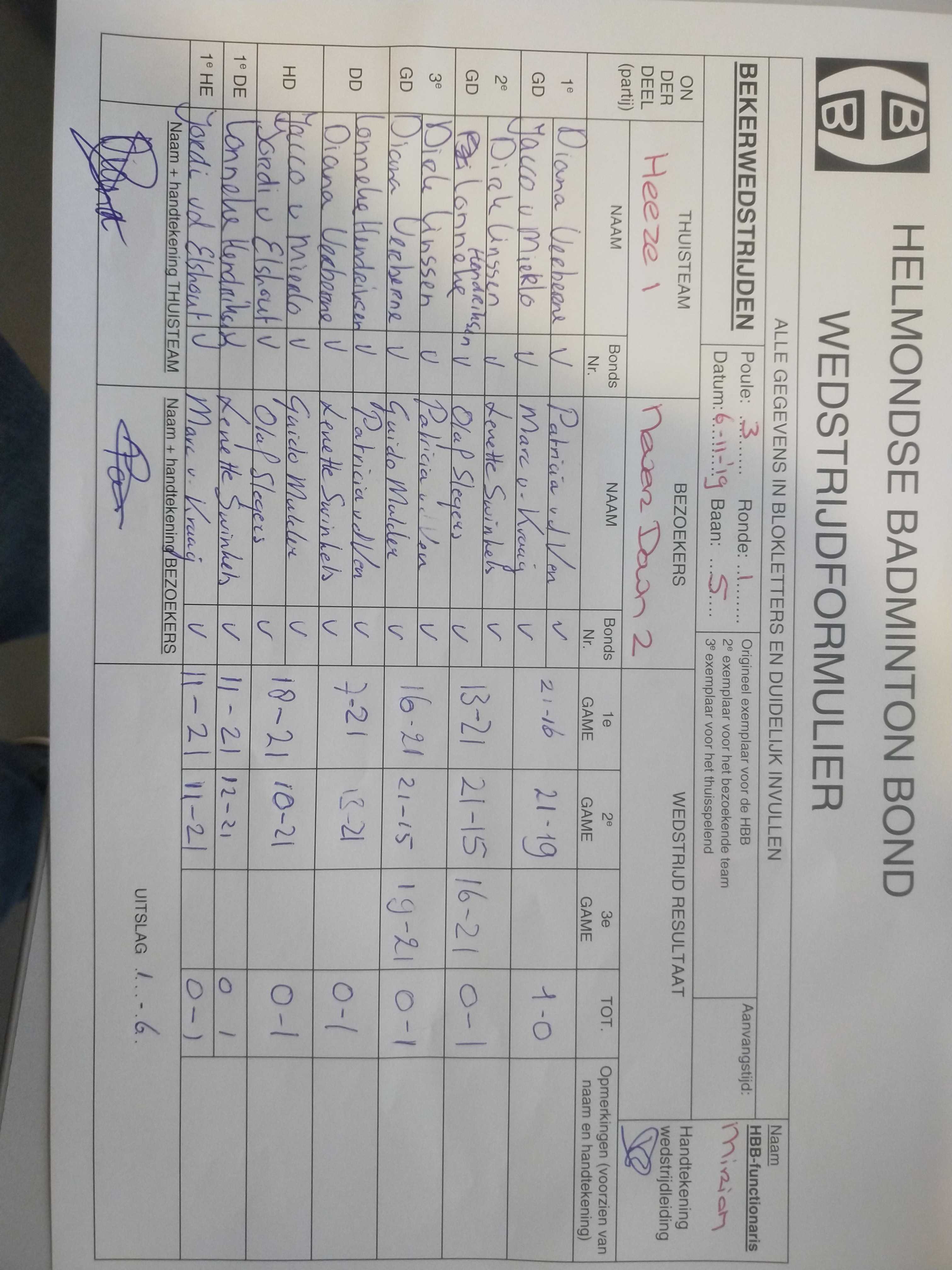 | 3028 | wo. 06-11-2019 | Heeze 1 | - | Never Down 2 | 5 | 1 - 6 | |||