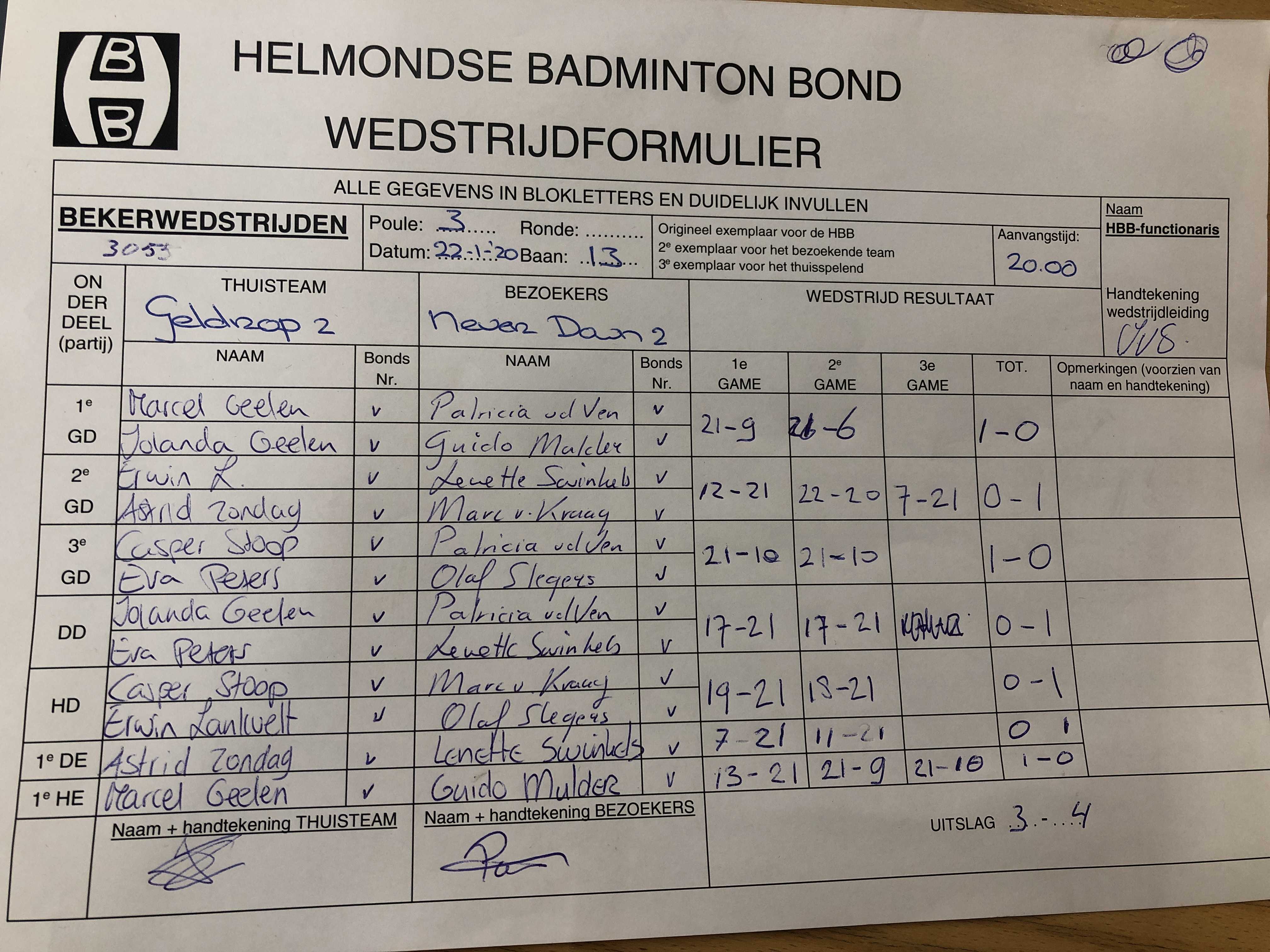 | 3055 | wo. 22-01-2020 | Geldrop 2 | - | Never Down 2 | 13 | 3 - 4 | |||