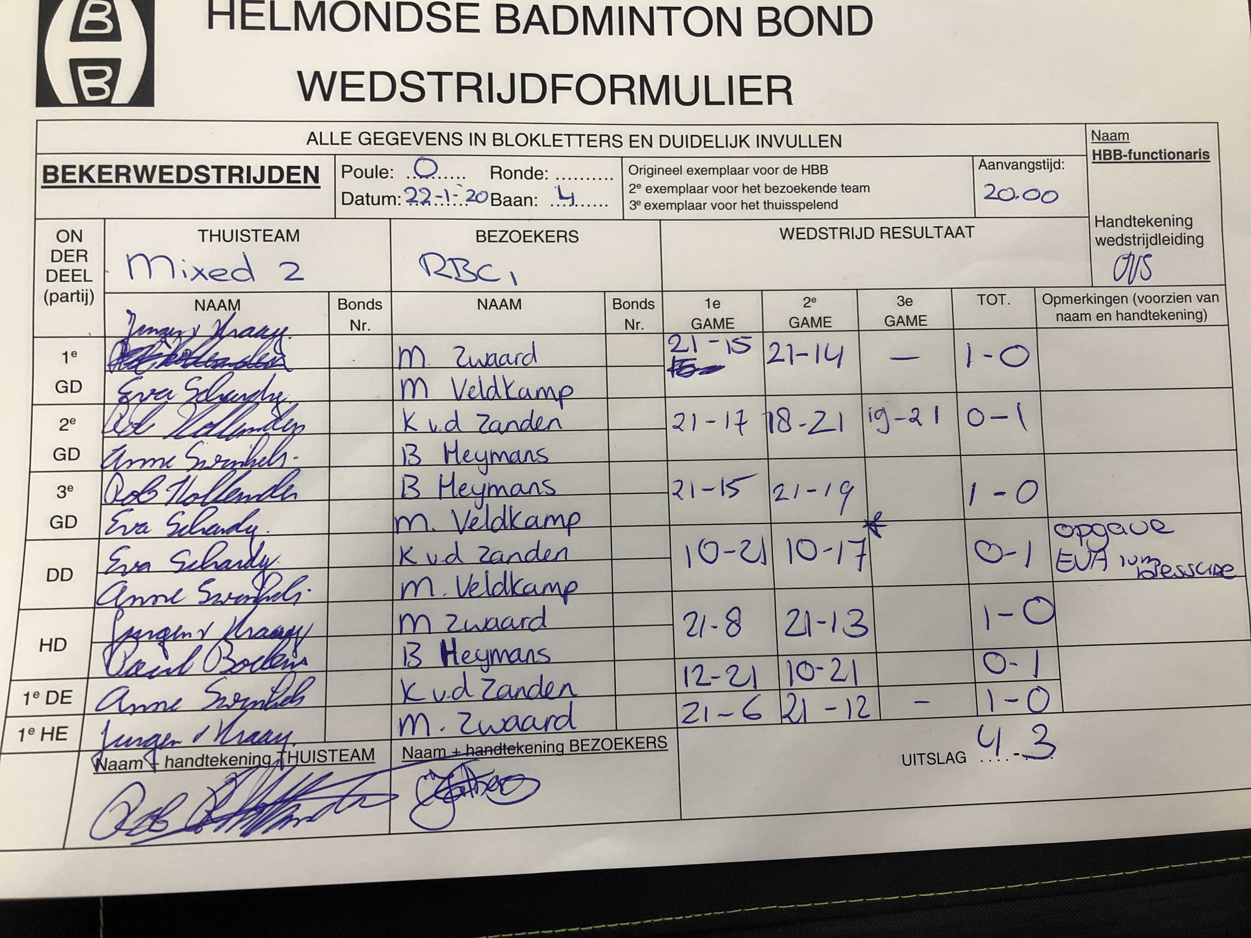 | 1050 | wo. 27-11-2019 | Mixed 2 | - | Bakel 1 | 5 | 4 - 4 | |||