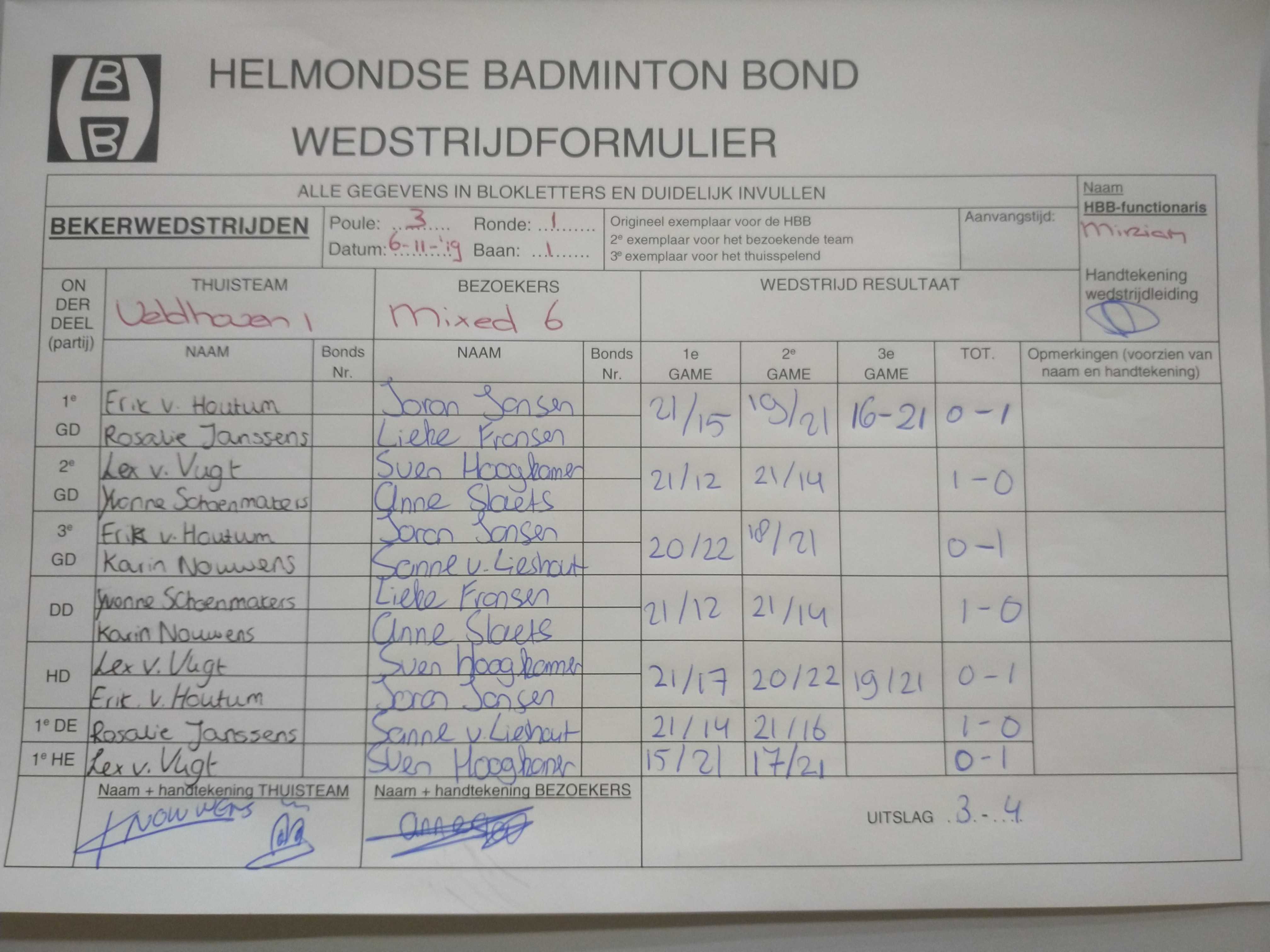 | 3024 | wo. 06-11-2019 | Veldhoven 1 | - | Mixed 6 | 1 | 3 - 4 | |||