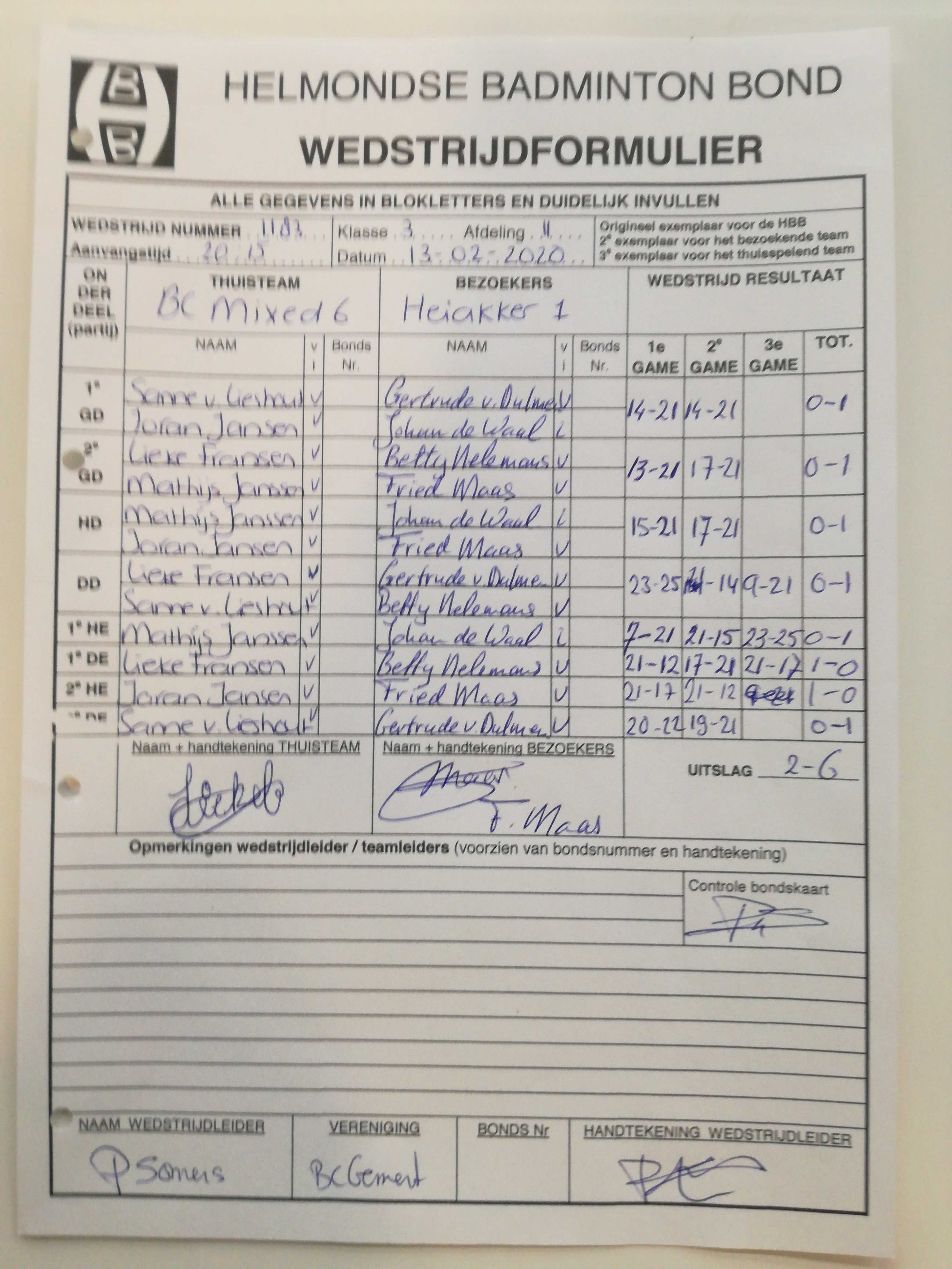 | 1188 | wo. 11-03-2020 | Mixed 6 | - | Gemert 2 | 13 | - | |||