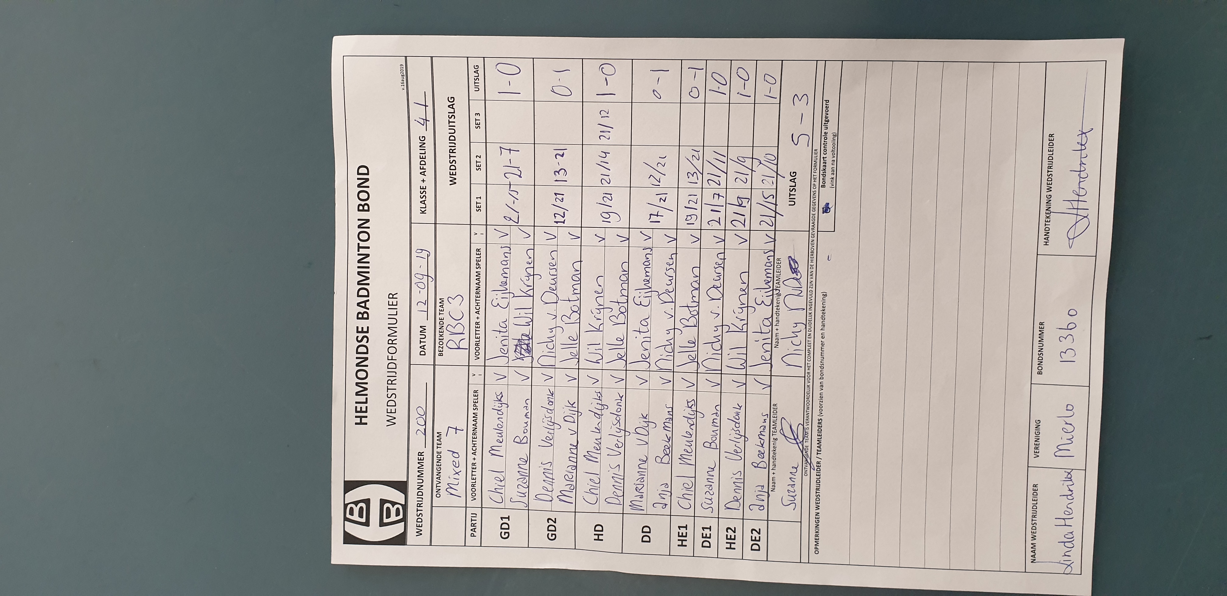 | 202 | wo. 18-09-2019 | Ganzeveer 4 | - | Mixed 7 | 14 | 1 - 7 | |||