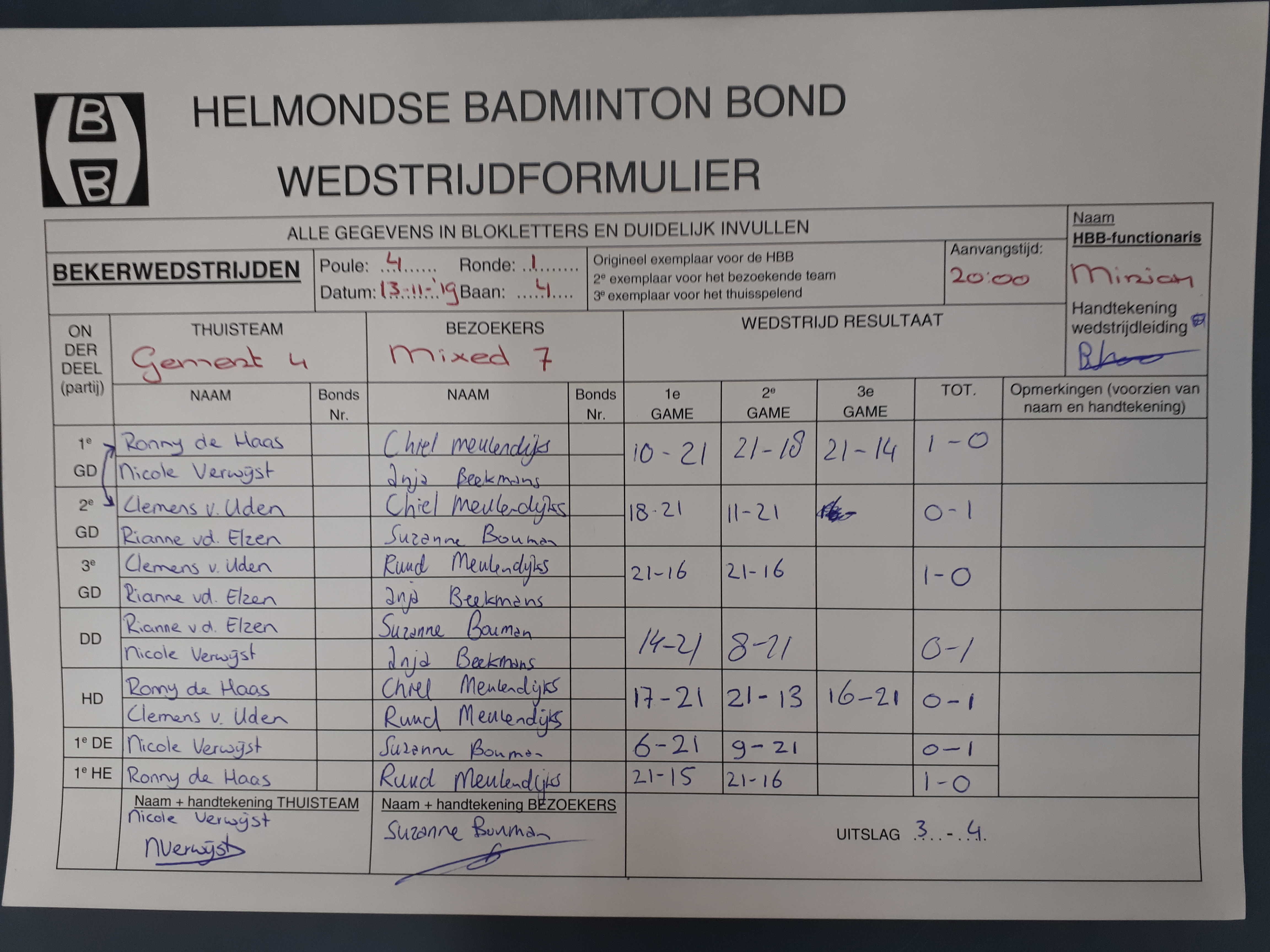 | 3034 | wo. 13-11-2019 | Gemert 4 | - | Mixed 7 | 4 | 3 - 4 | |||