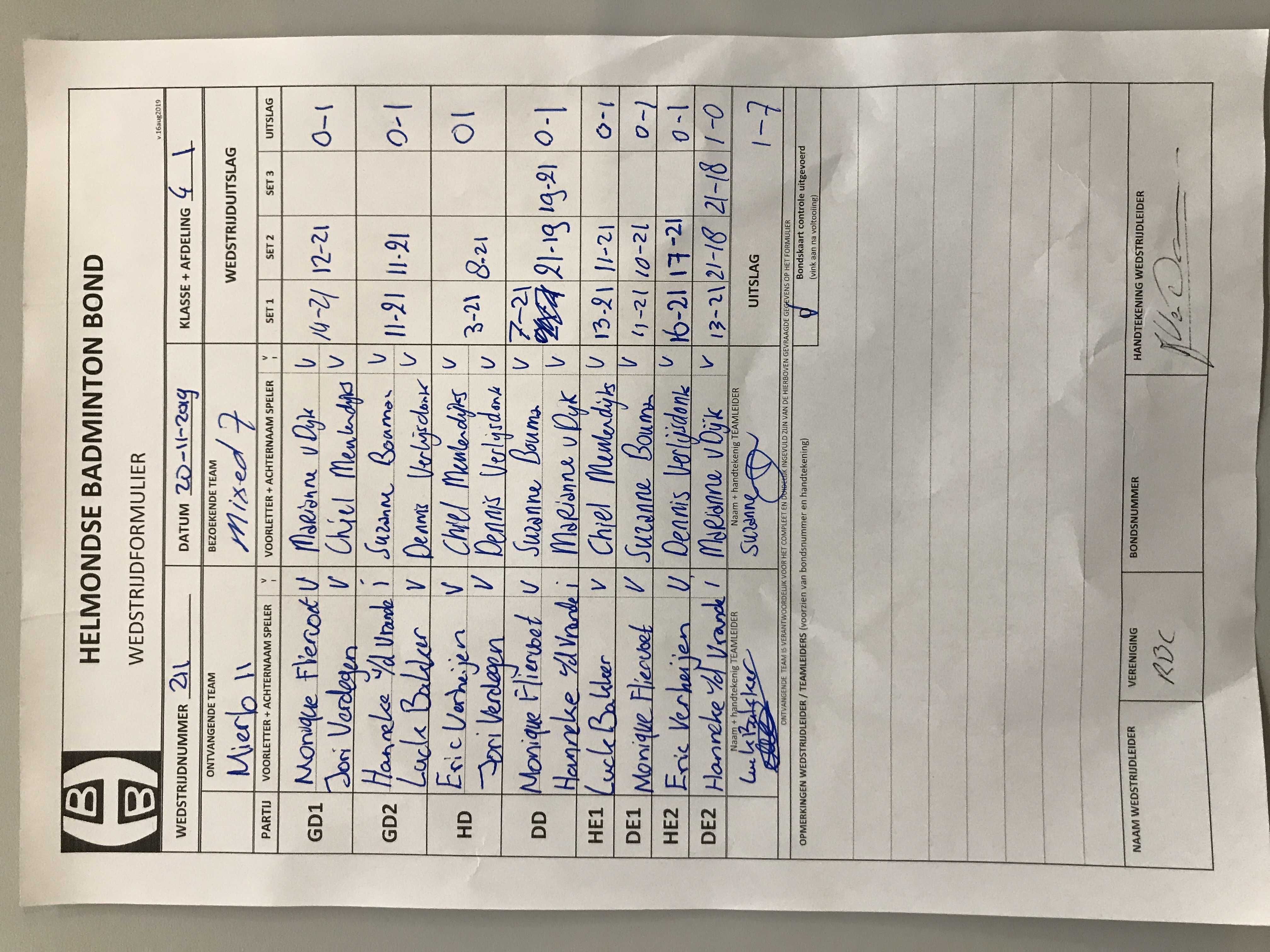 | 211 | wo. 20-11-2019 | Mierlo 11 | - | Mixed 7 | 3 | 1 - 7 | |||