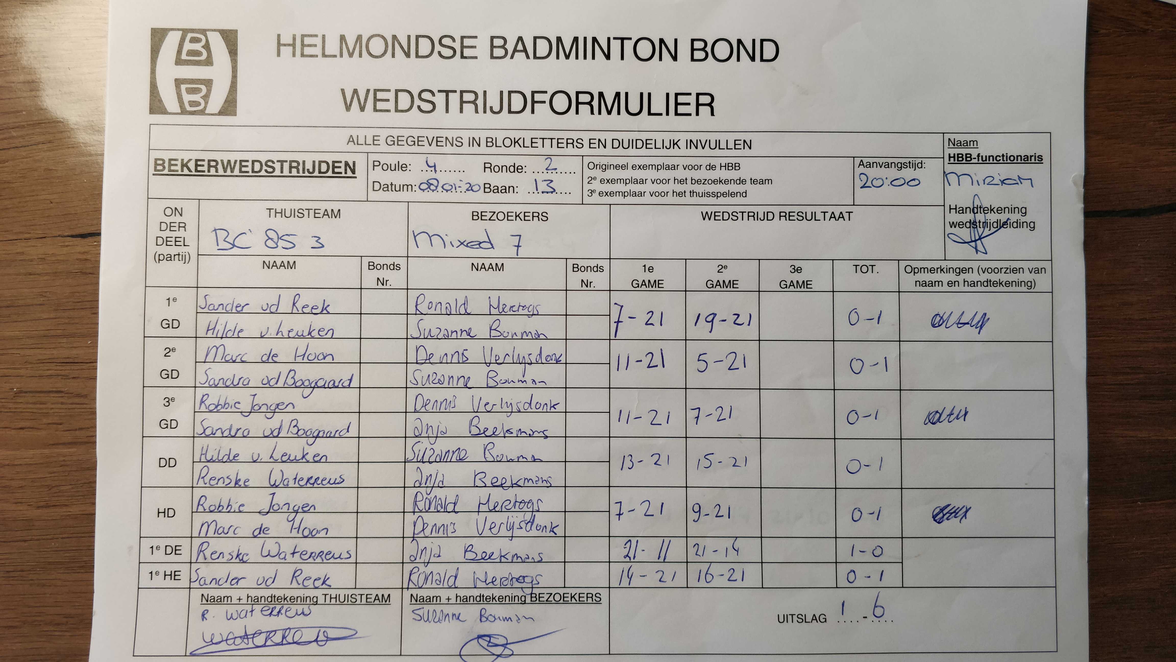 | 3059 | wo. 08-01-2020 | BC '85 3 | - | Mixed 7 | 13 | 1 - 6 | |||