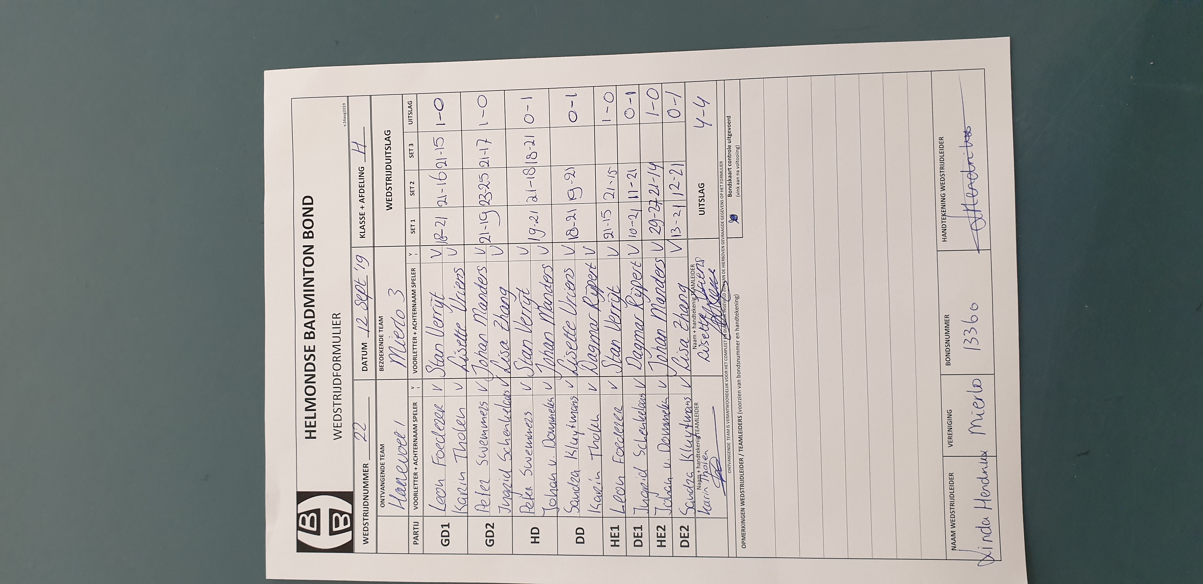 | 22 | do. 12-09-2019 | Hanevoet 1 | - | Mierlo 3 | 11 | 4 - 4 | |||
