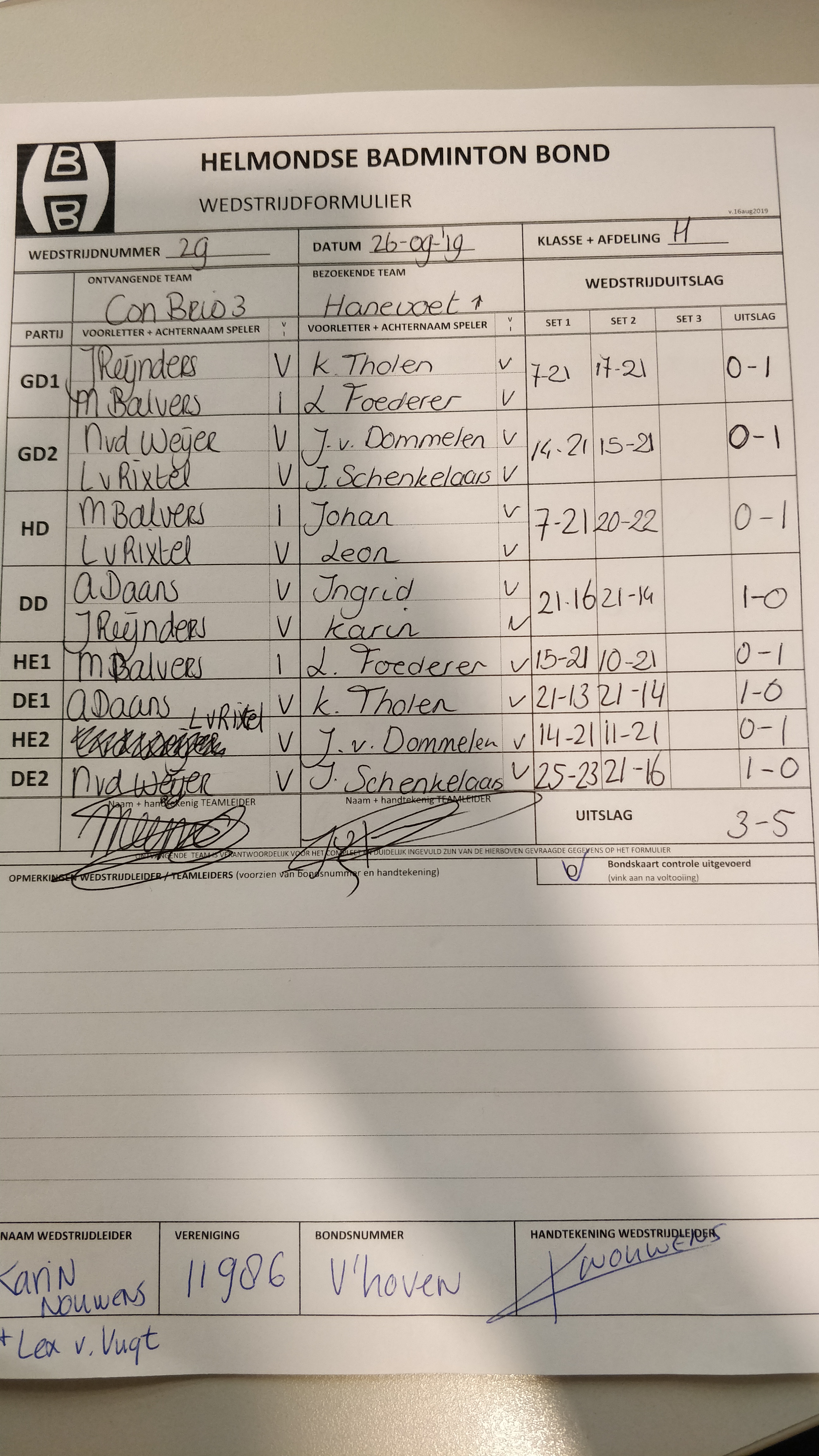 | 29 | do. 26-09-2019 | Con Brio 3 | - | Hanevoet 1 | 12 | 3 - 5 | |||