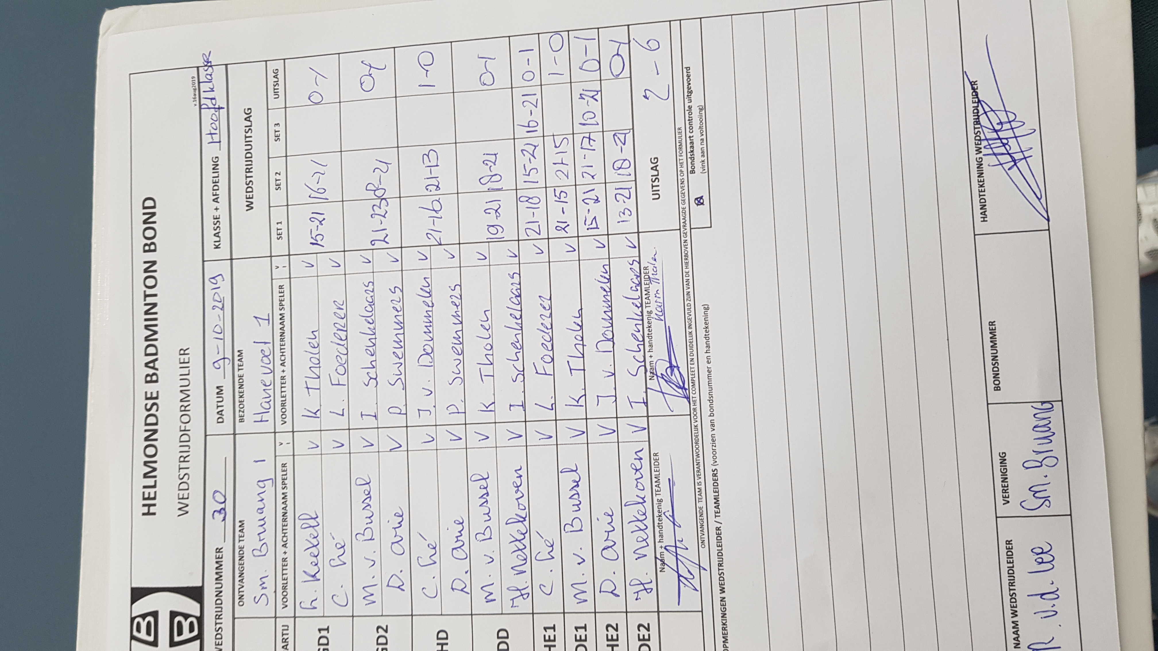 | 30 | wo. 09-10-2019 | Smashing Bruang 1 | - | Hanevoet 1 | 3 | 2 - 6 | |||