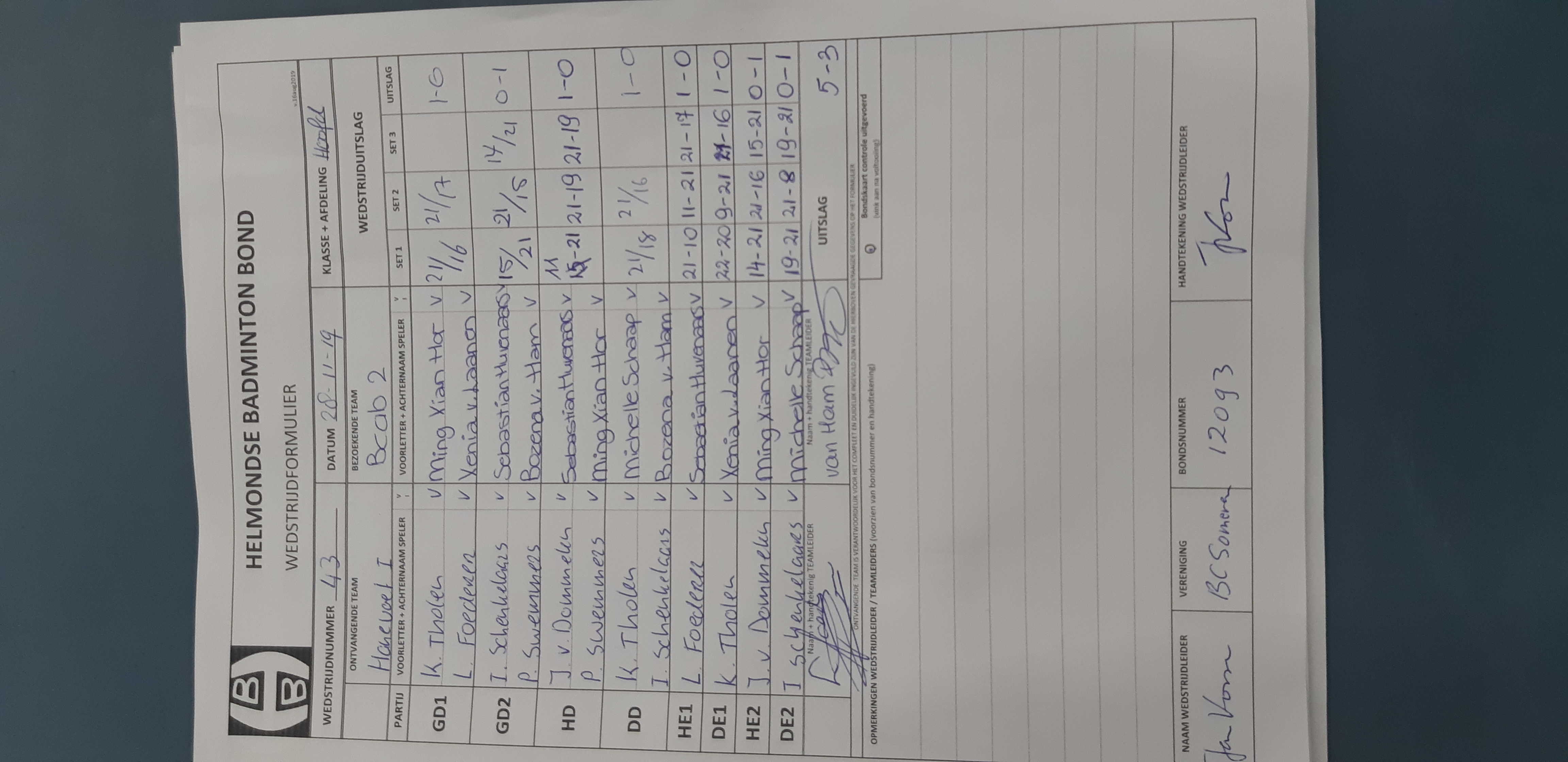 | 43 | do. 28-11-2019 | Hanevoet 1 | - | BCAB 2 | 15 | 5 - 3 | |||