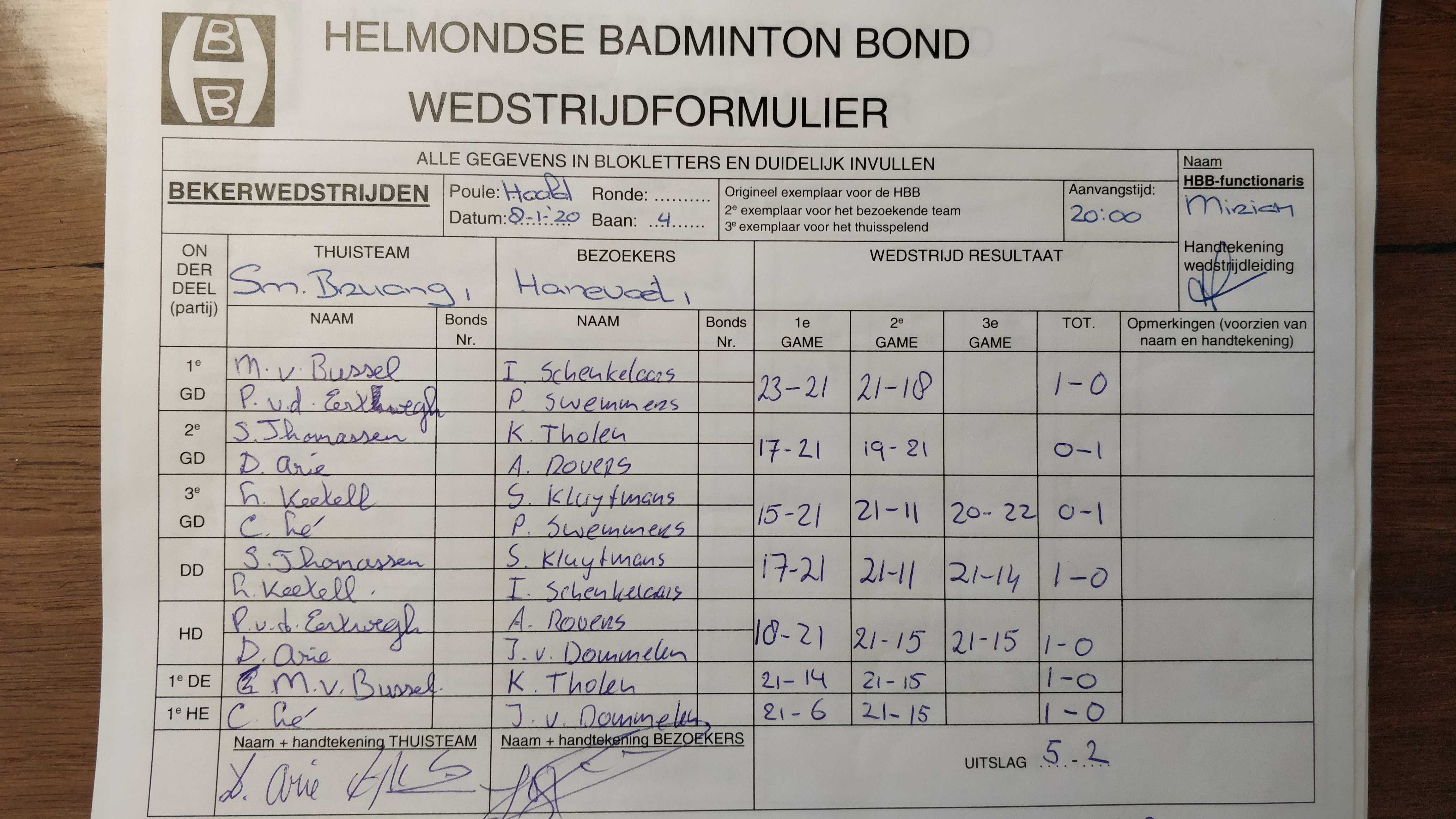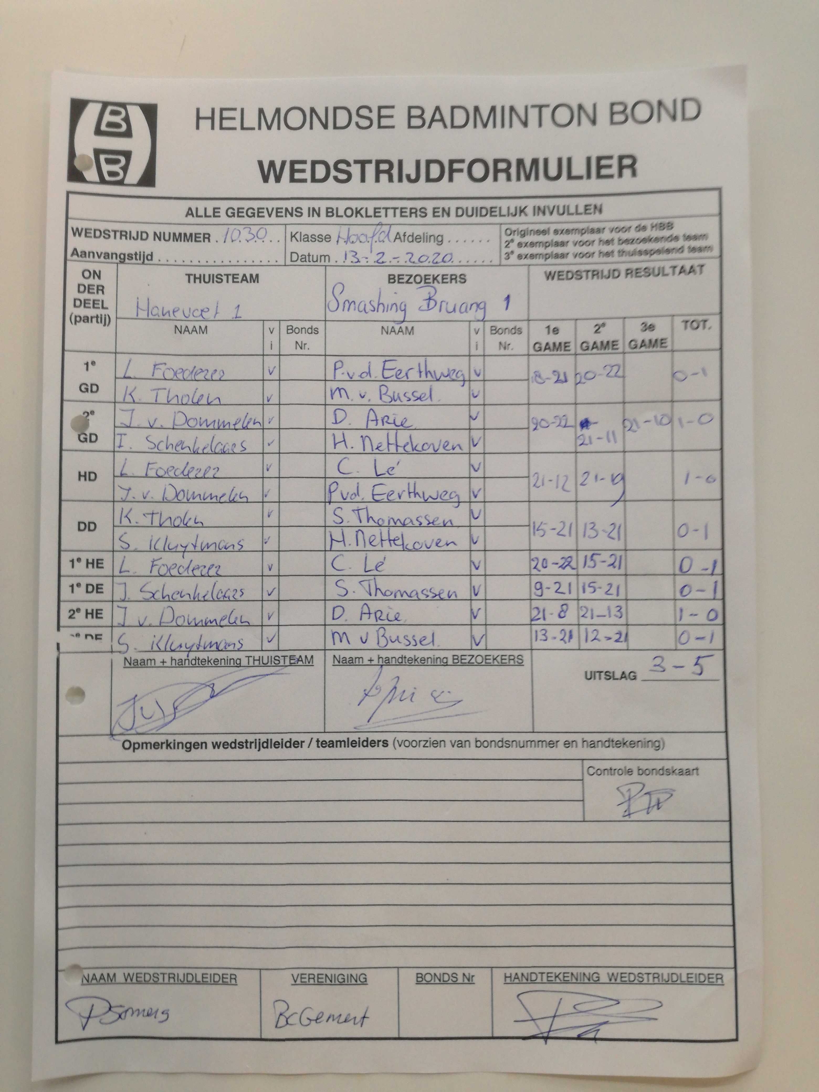 | 3006 | wo. 08-01-2020 | Smashing Bruang 1 | - | Hanevoet 1 | 4 | 5 - 2 | |||