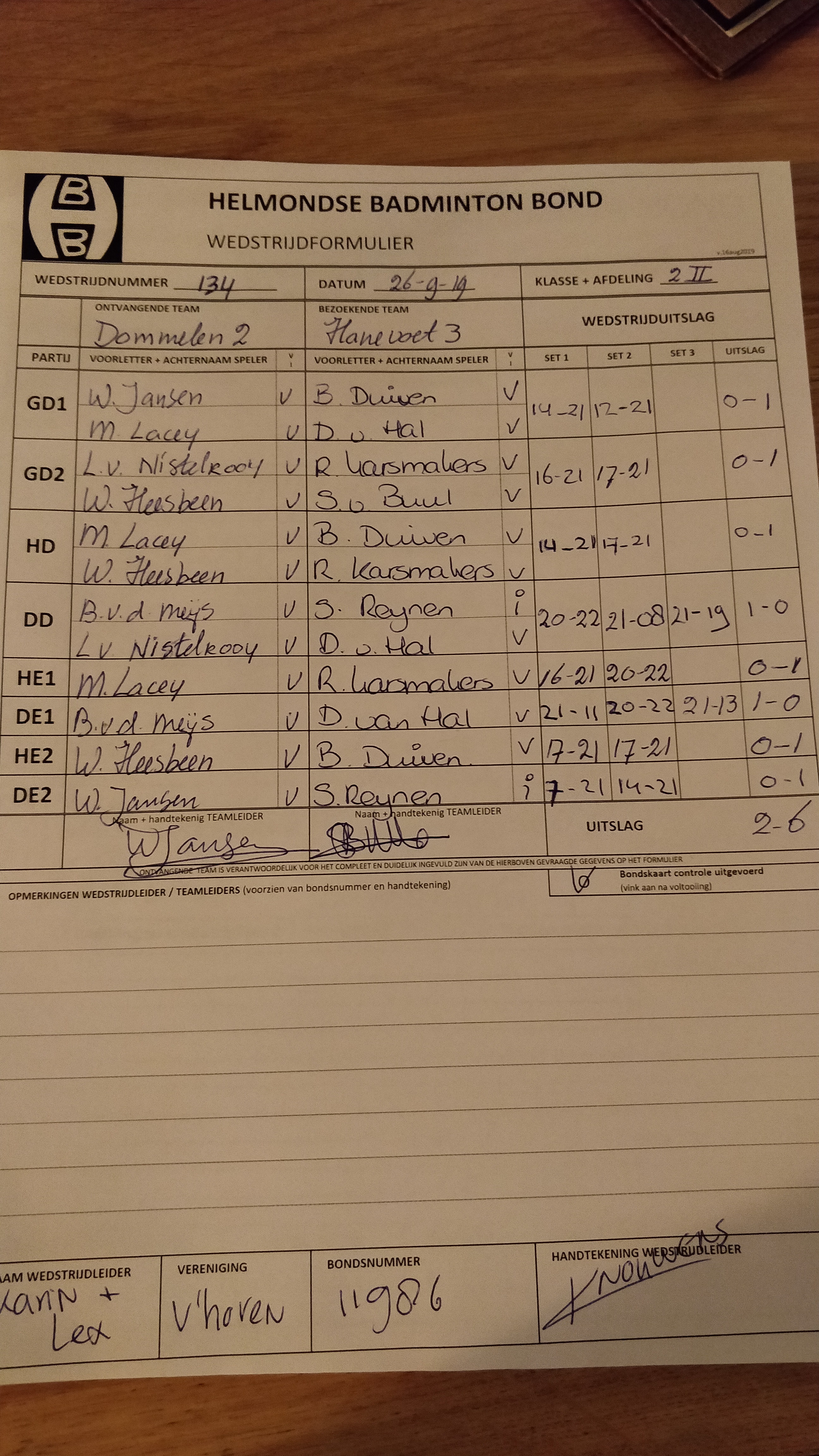 | 134 | do. 26-09-2019 | Dommelen 2 | - | Hanevoet 3 | 13 | 2 - 6 | |||
