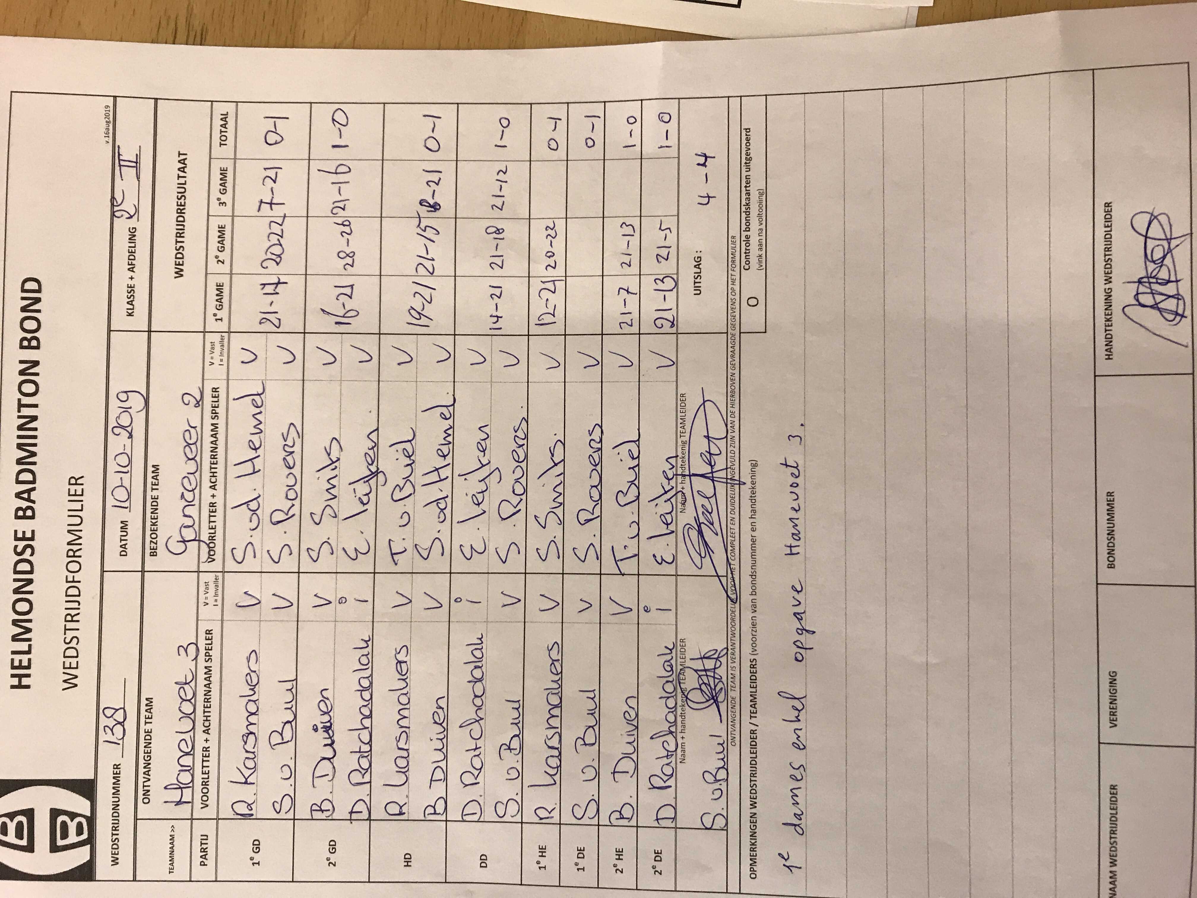 | 138 | do. 10-10-2019 | Hanevoet 3 | - | Ganzeveer 2 | 10 | 4 - 4 | |||