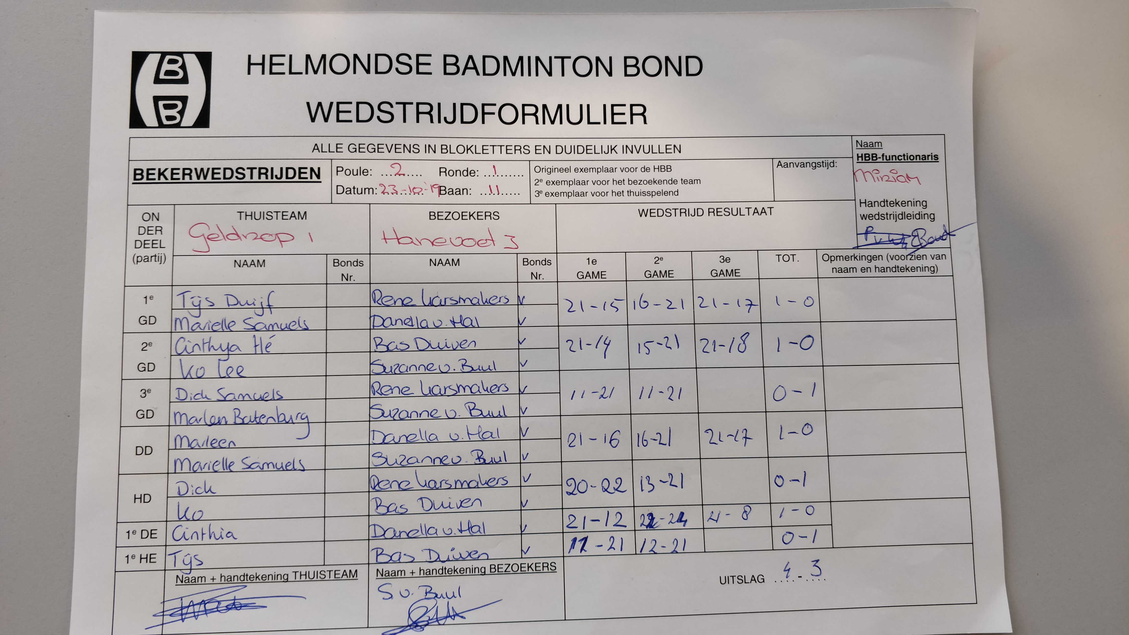 | 3020 | wo. 23-10-2019 | Geldrop 1 | - | Hanevoet 3 | 11 | 4 - 3 | |||