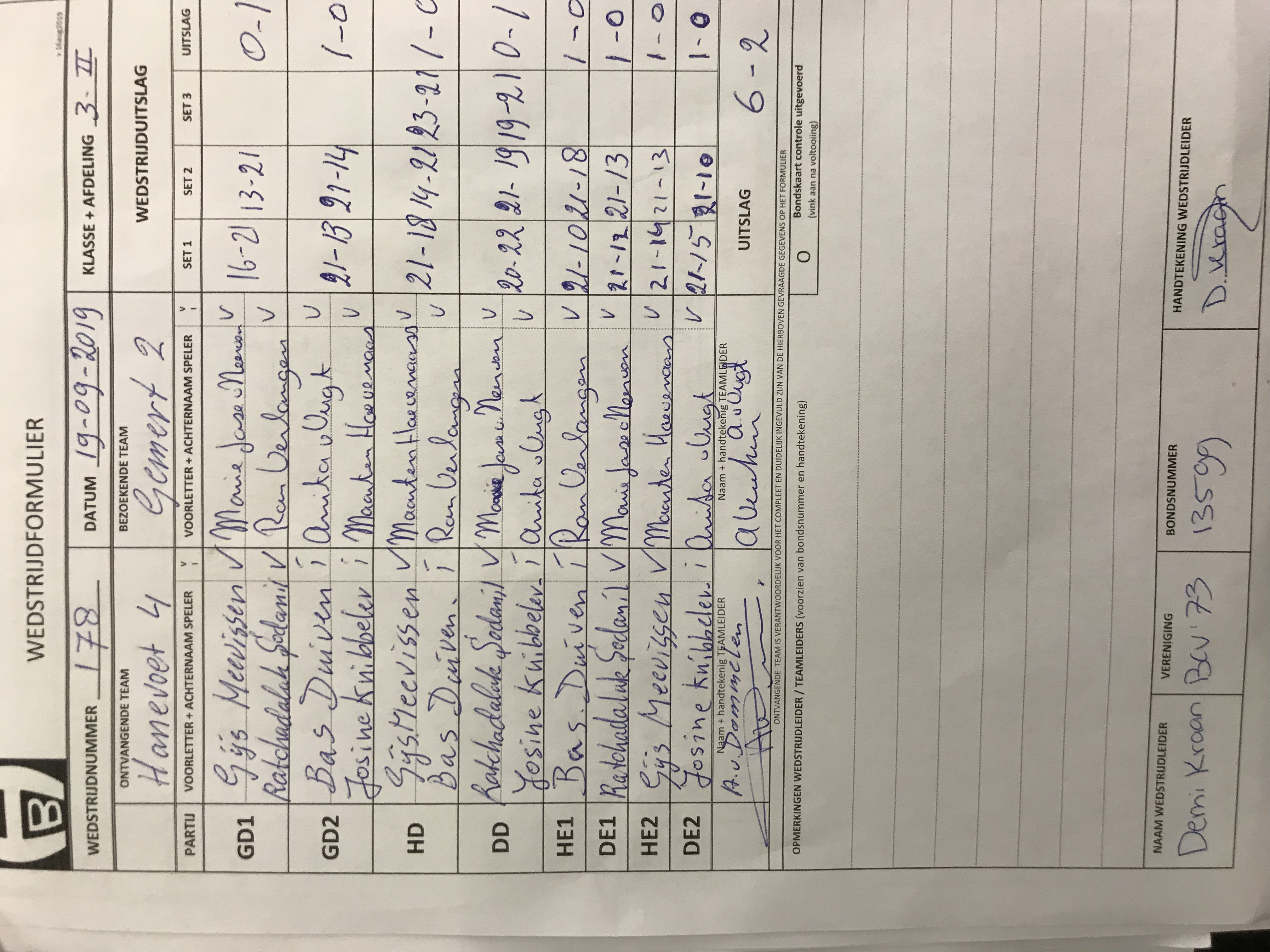 | 178 | do. 19-09-2019 | Hanevoet 4 | - | Gemert 2 | 15 | 6 - 2 | |||