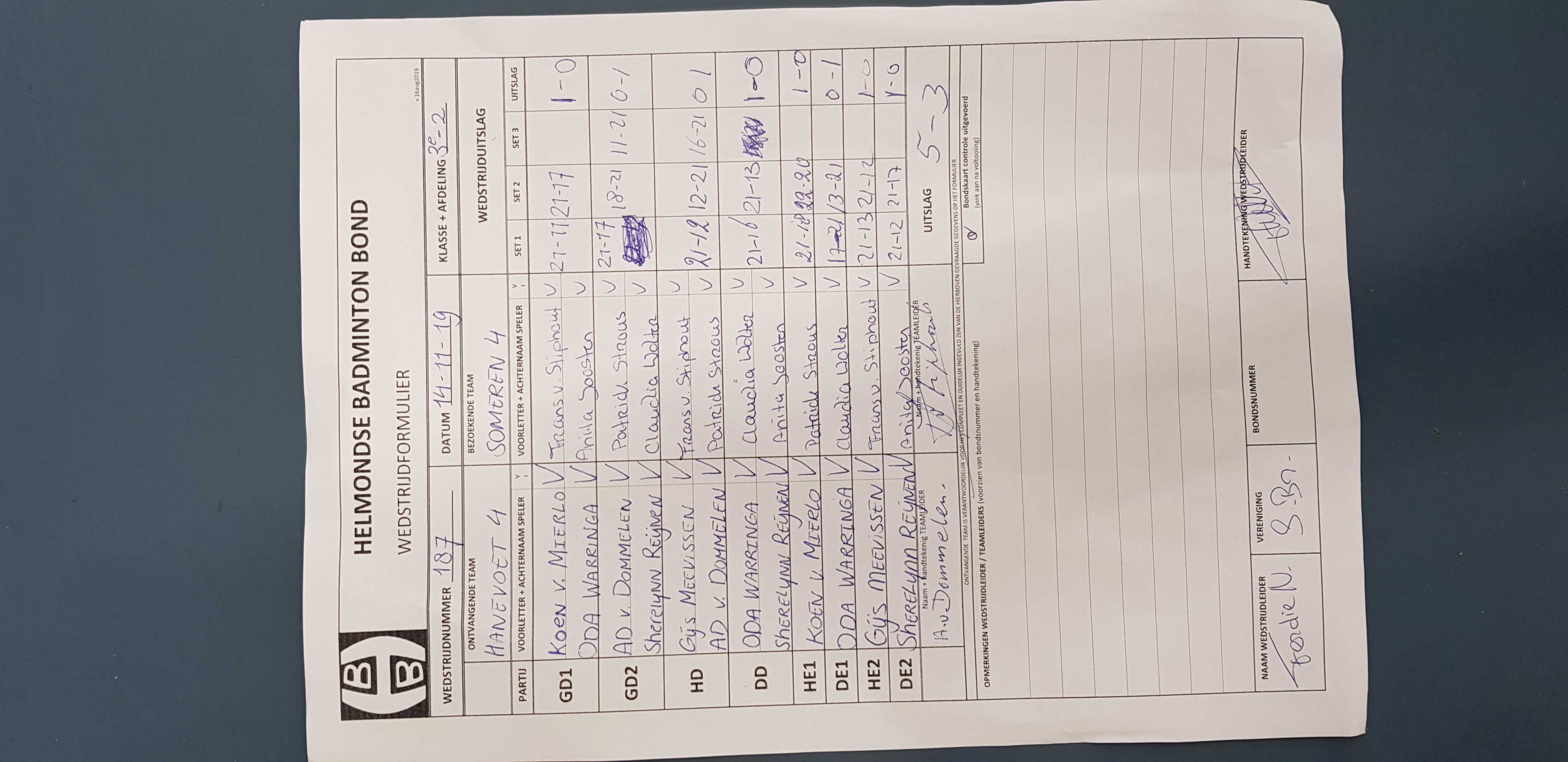 | 187 | do. 14-11-2019 | Hanevoet 4 | - | Someren 4 | 4 | 5 - 3 | |||