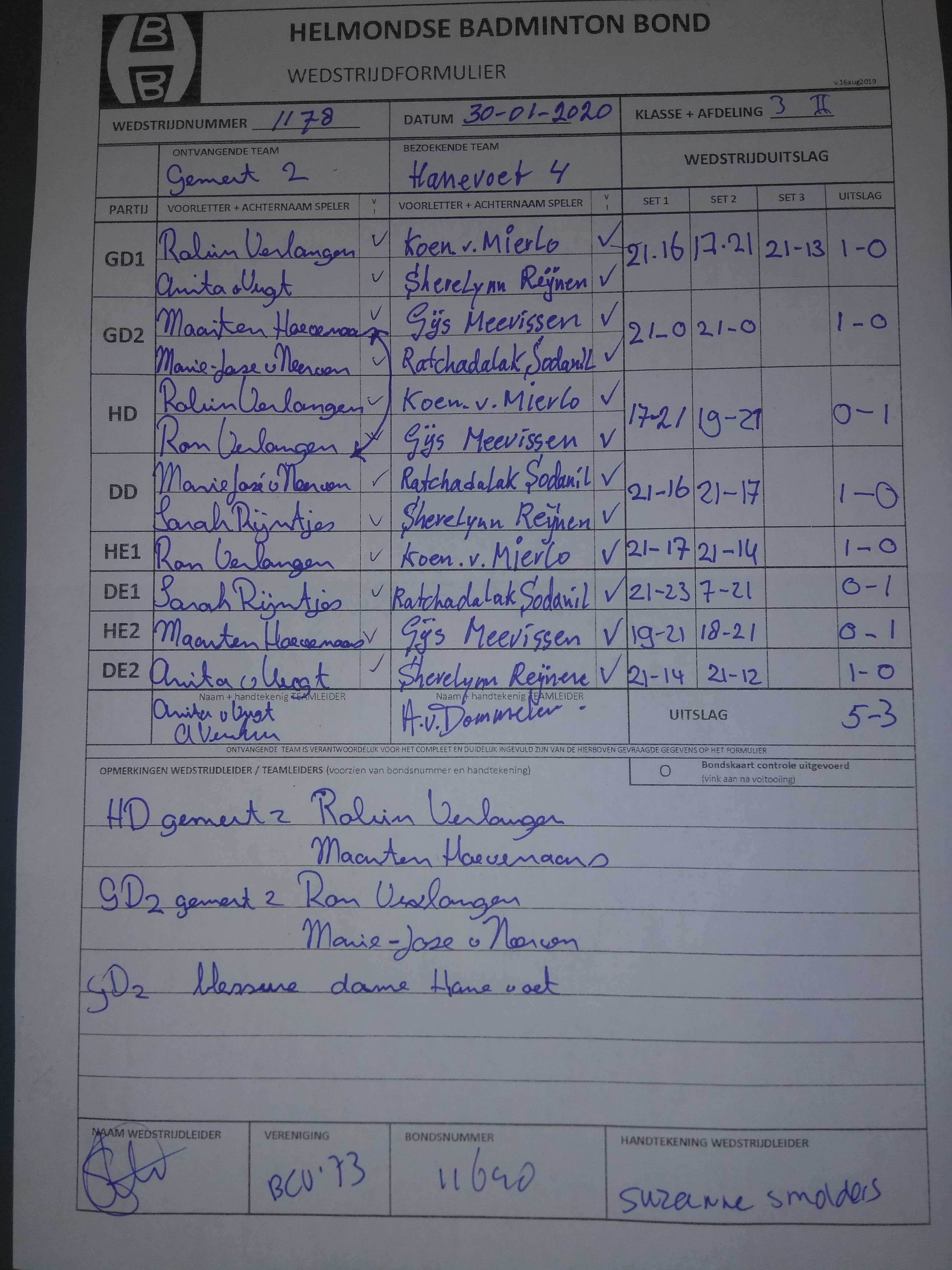 | 1178 | do. 30-01-2020 | Gemert 2 | - | Hanevoet 4 | 2 | 5 - 3 | |||