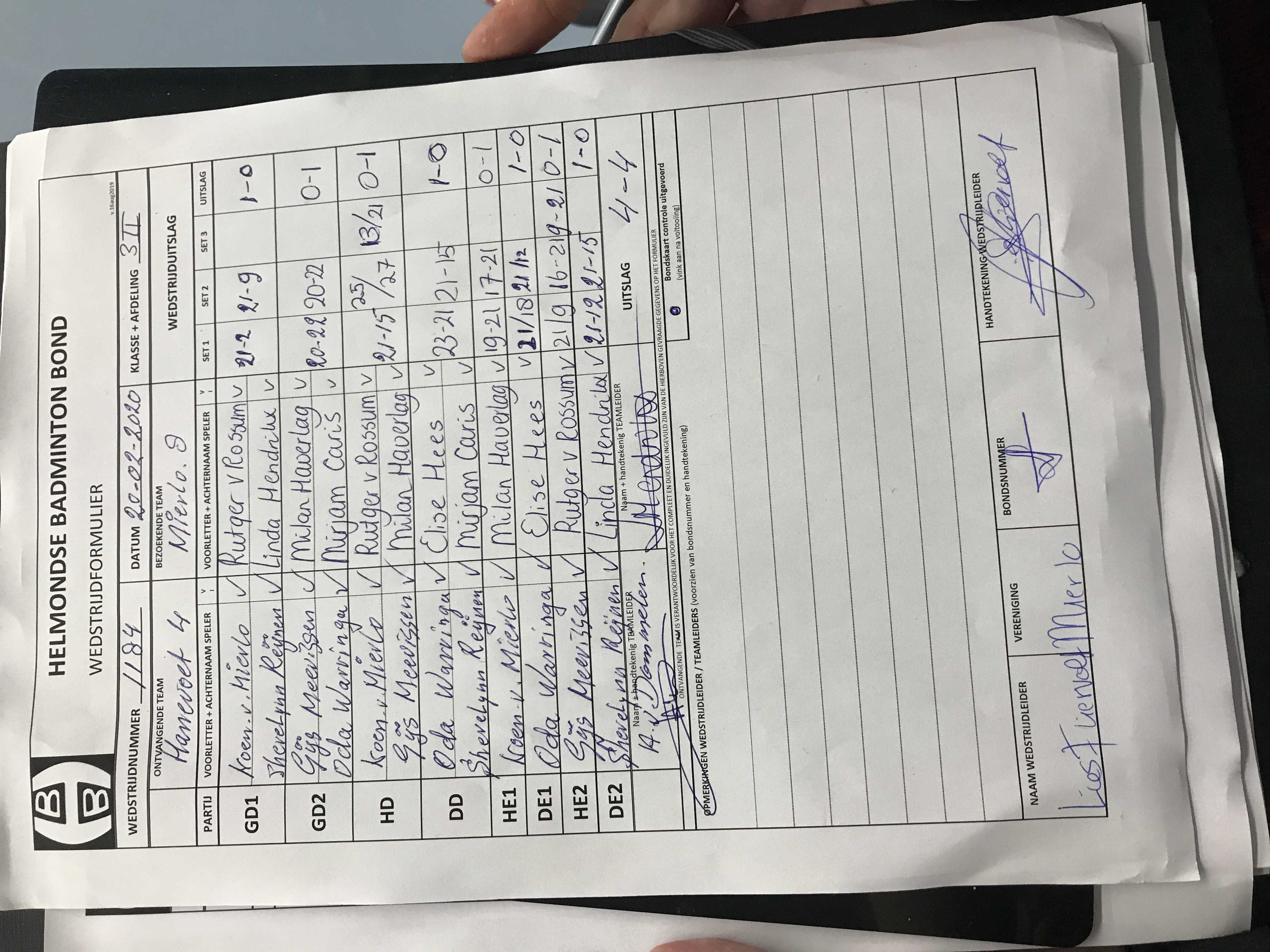 | 1184 | do. 20-02-2020 | Hanevoet 4 | - | Mierlo 8 | 14 | 4 - 4 | |||