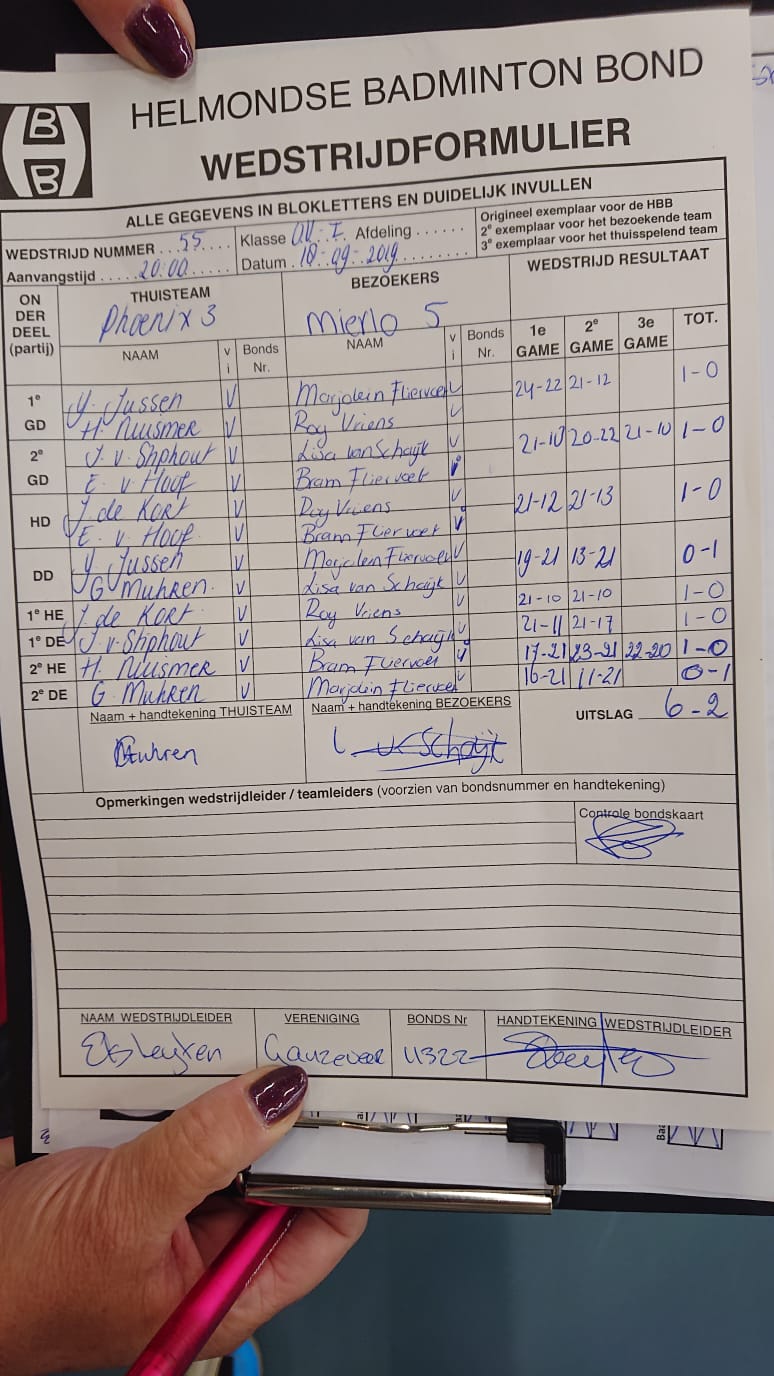 | 55 | wo. 18-09-2019 | Phoenix 3 | - | Mierlo 5 | 11 | 6 - 2 | |||