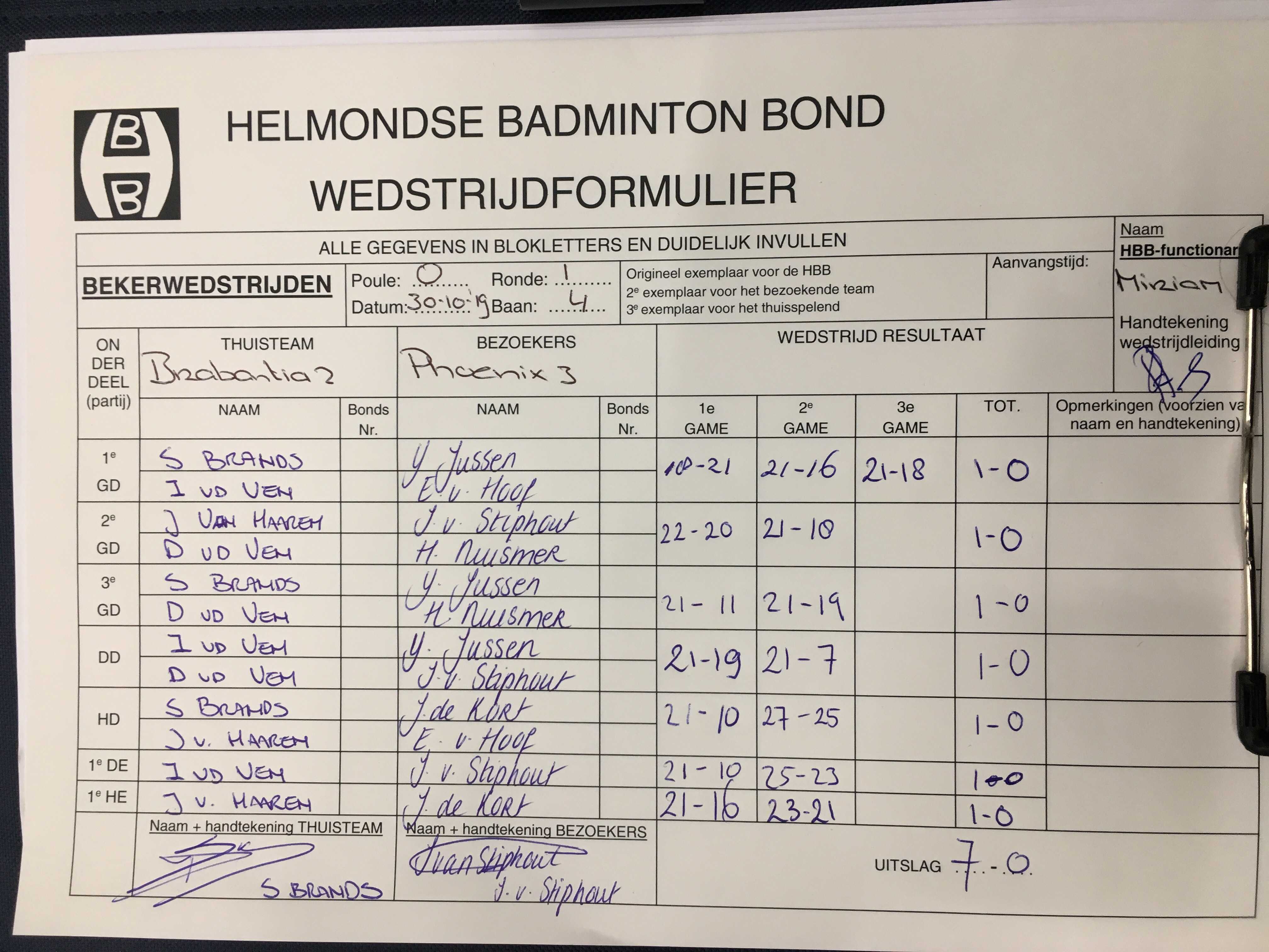 | 3010 | wo. 30-10-2019 | Brabantia 2 | - | Phoenix 3 | 4 | 7 - 0 | |||