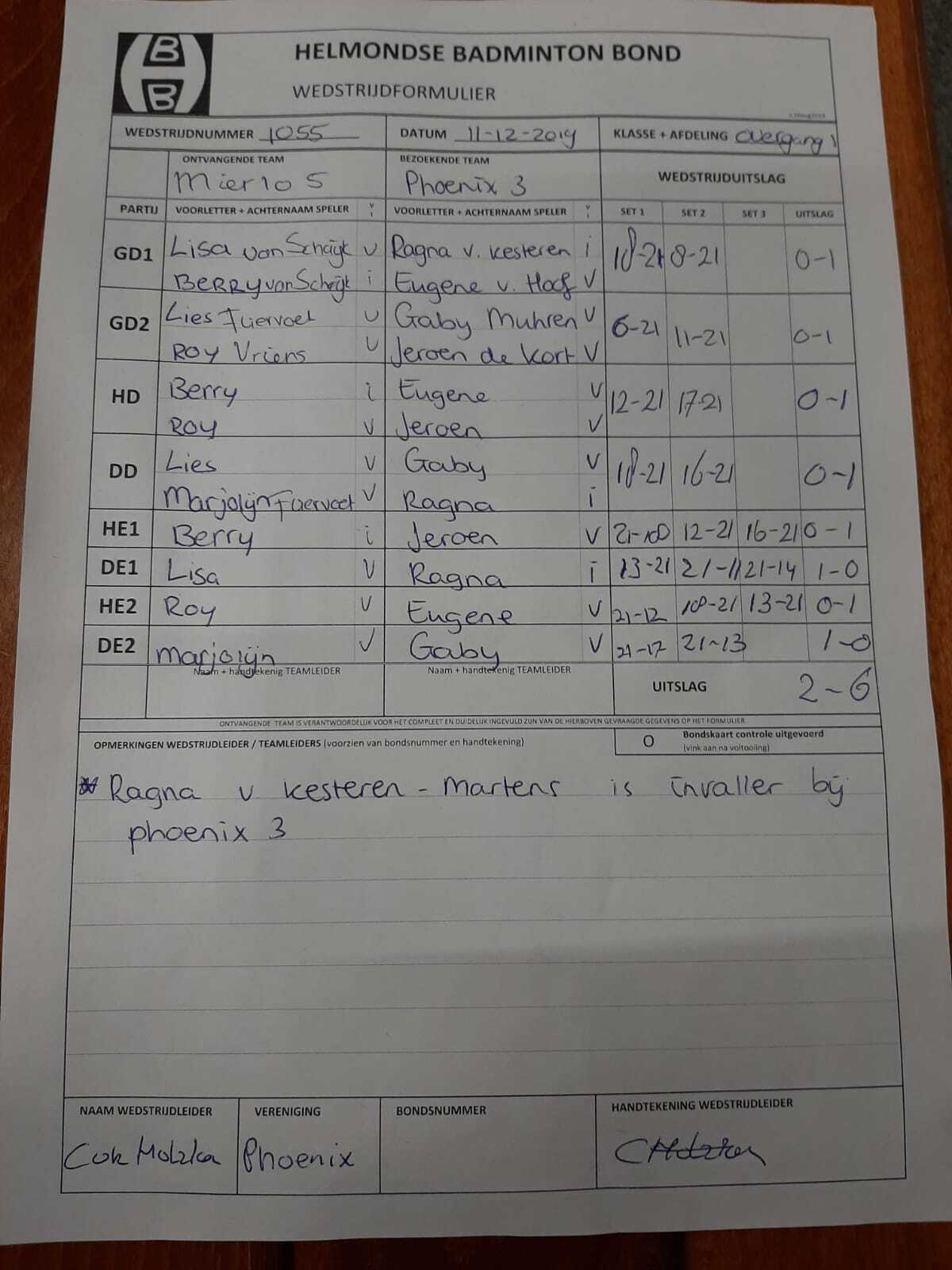 | 1055 | wo. 11-12-2019 | Mierlo 5 | - | Phoenix 3 | 4 | 2 - 6 | |||