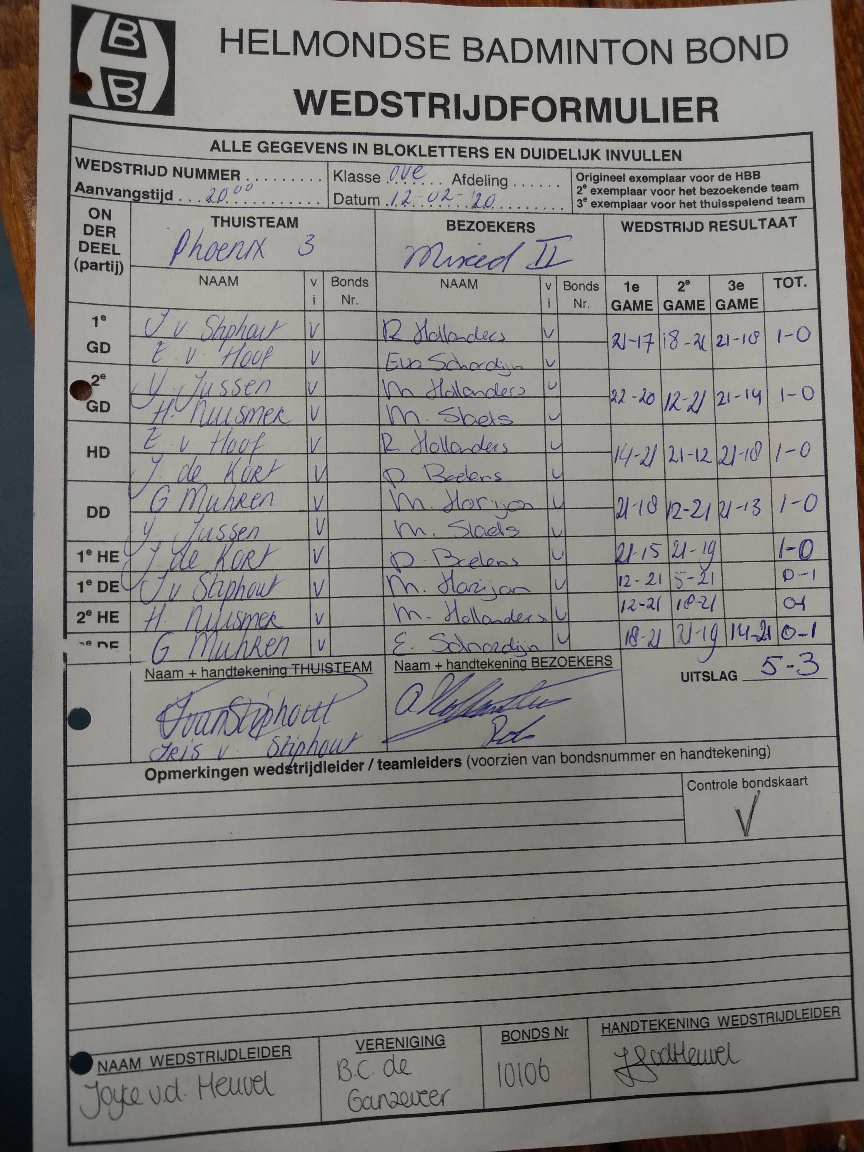 | 1063 | wo. 12-02-2020 | Phoenix 3 | - | Mixed 2 | 12 | 5 - 3 | |||