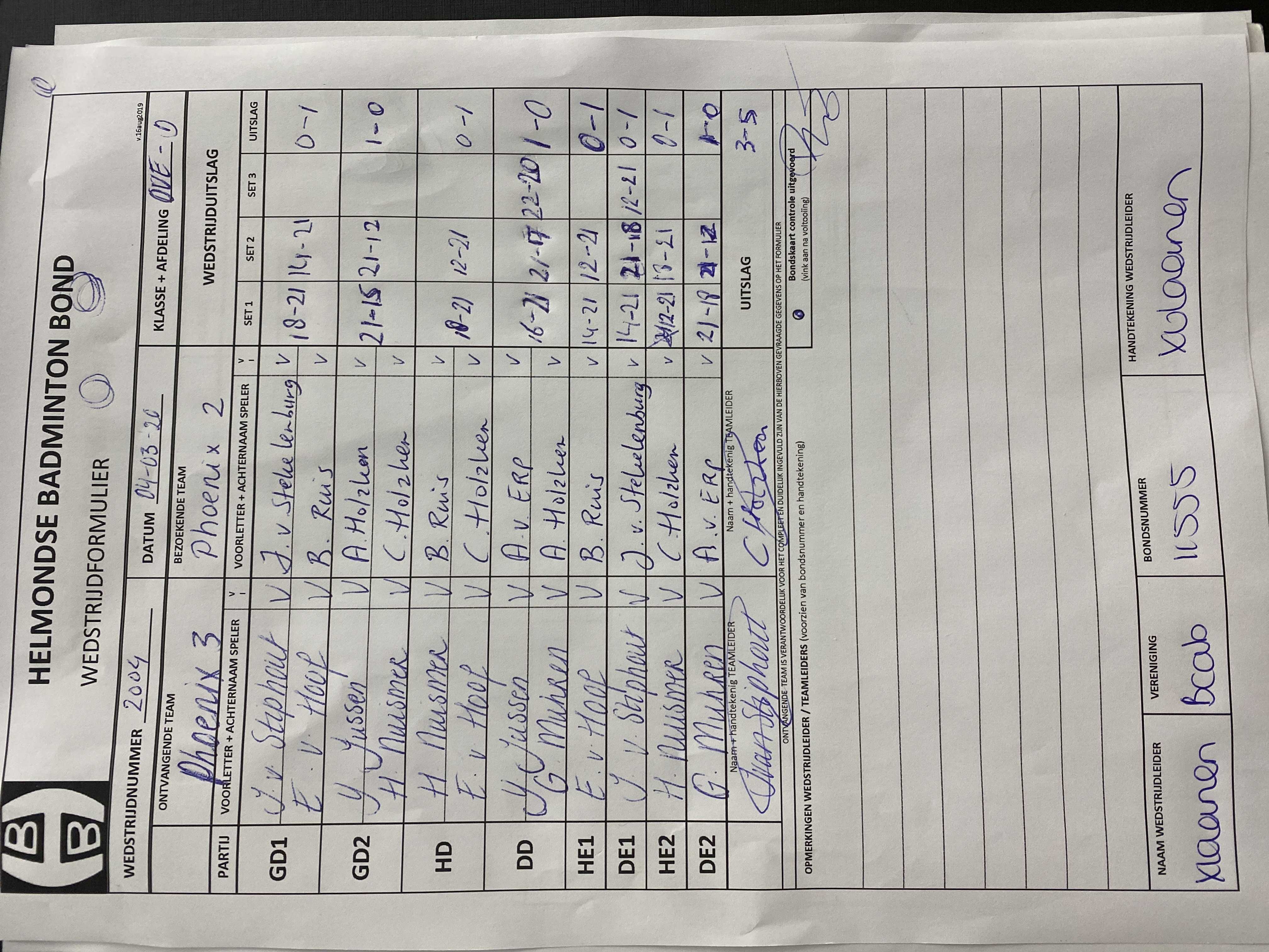 | 2021 | wo. 15-04-2020 | Mierlo 5 | - | Phoenix 3 | 12 | - | |||