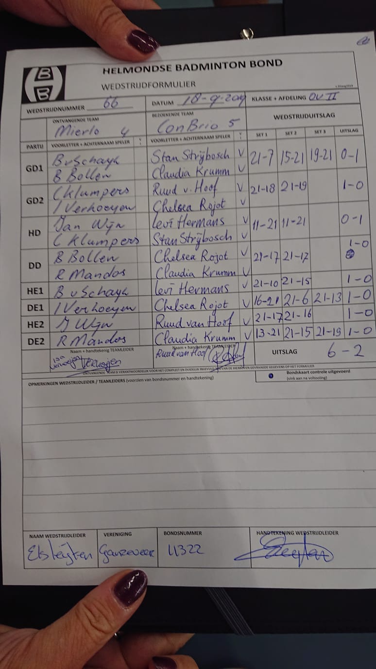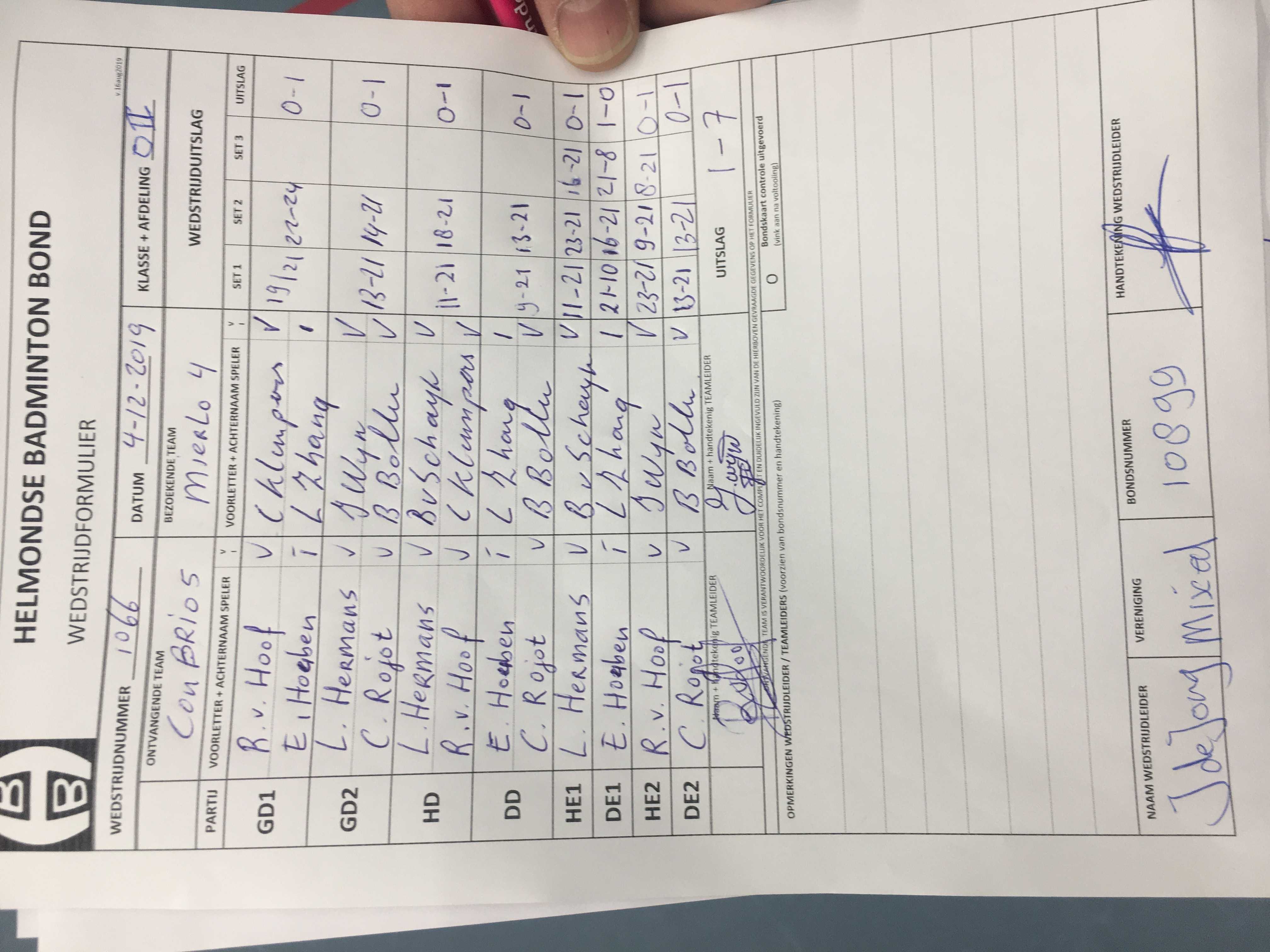 | 1066 | wo. 04-12-2019 | Con Brio 5 | - | Mierlo 4 | 15 | 1 - 7 | |||