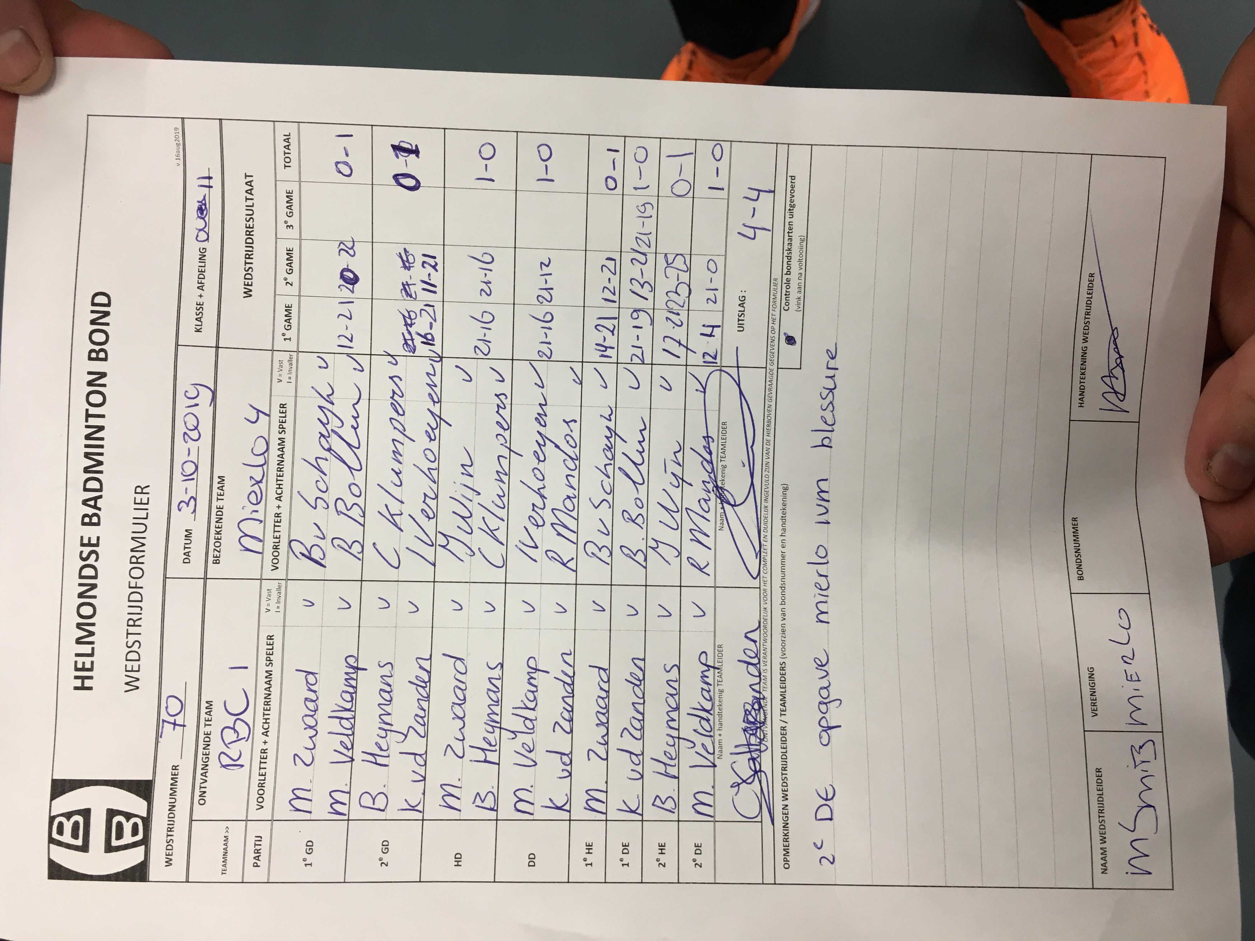 | 70 | do. 03-10-2019 | RBC 1 | - | Mierlo 4 | 11 | 4 - 4 | |||