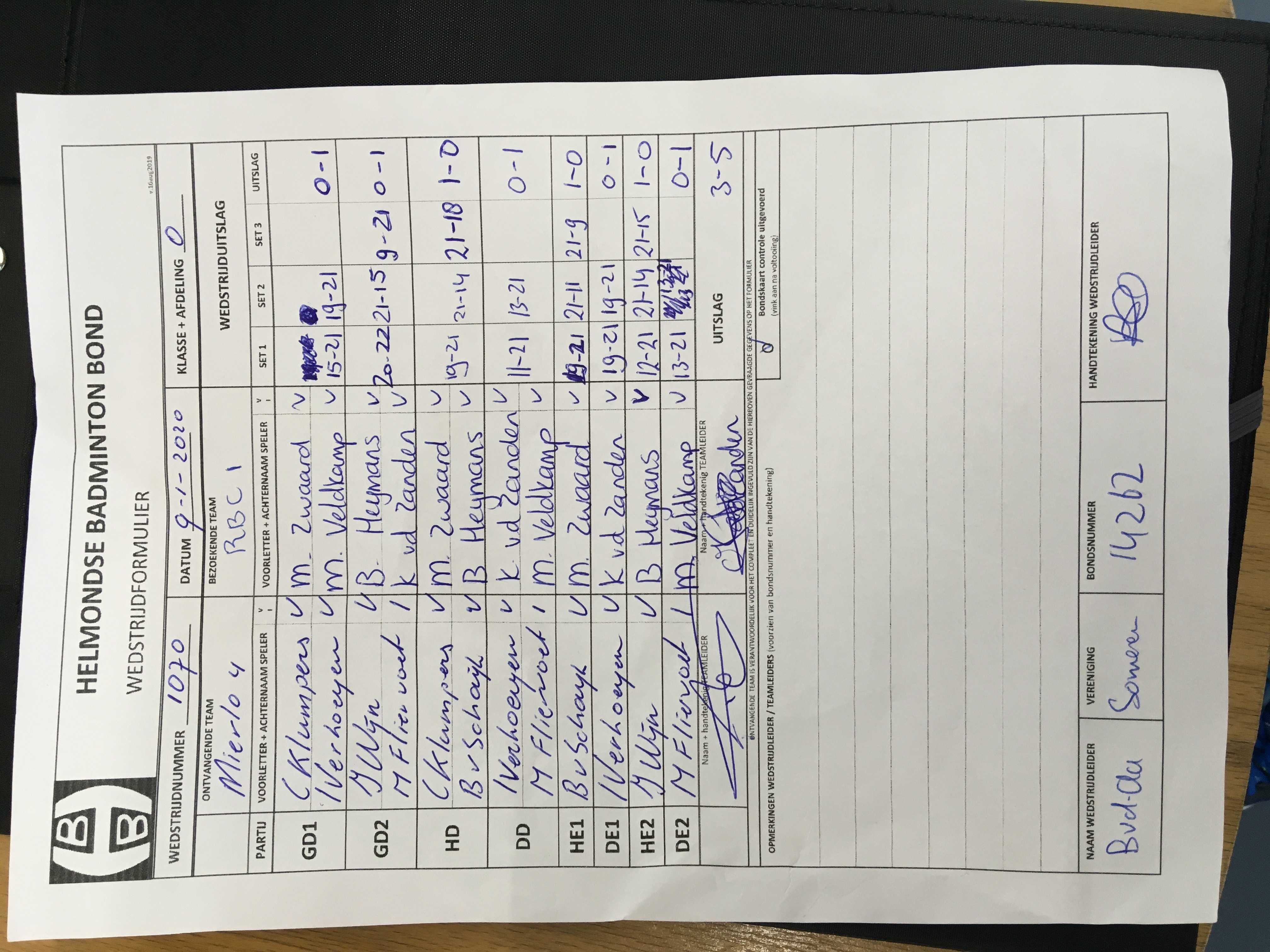 | 1079 | wo. 19-02-2020 | Mixed 3 | - | Mierlo 4 | 3 | 3 - 5 | |||