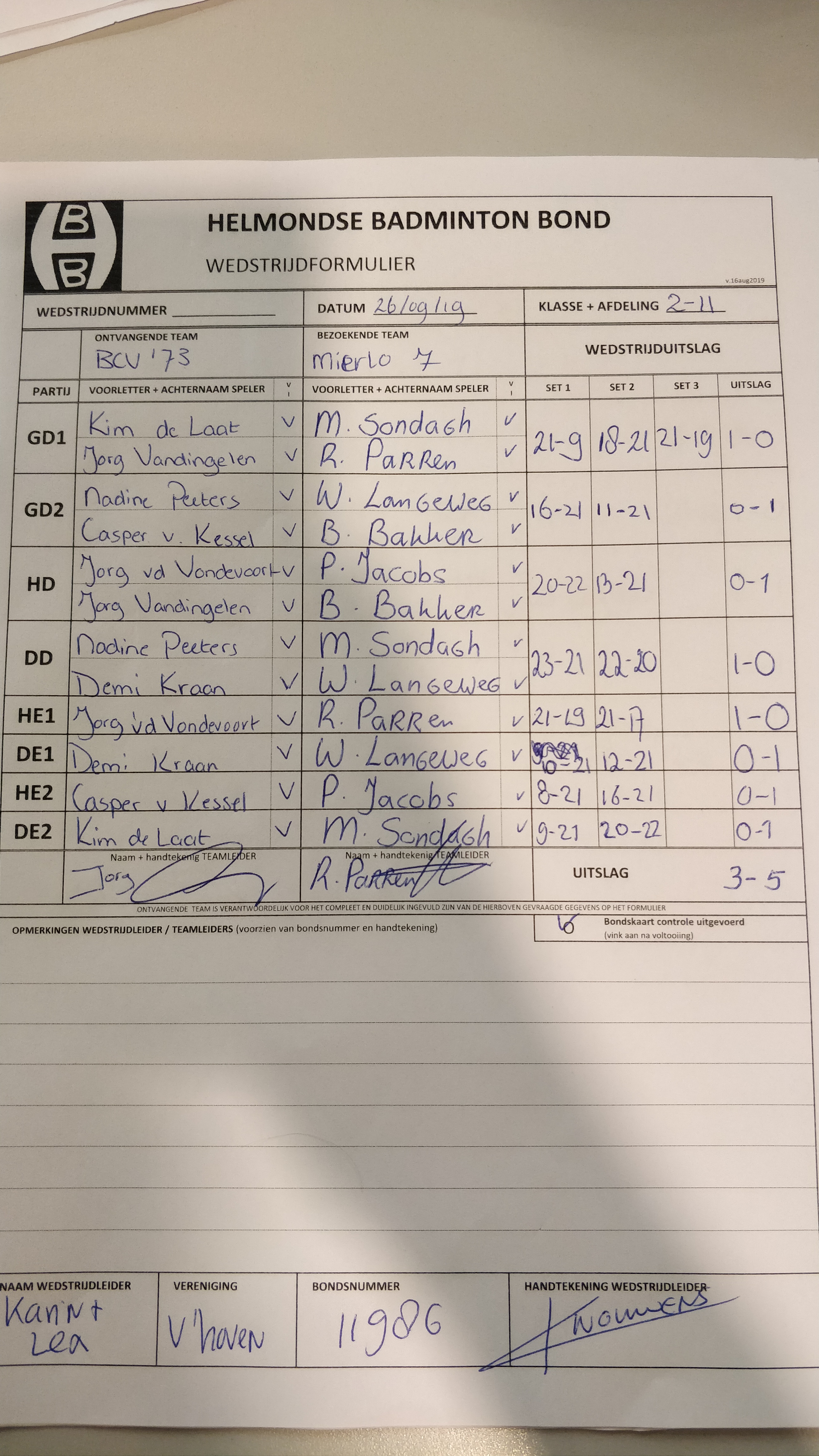 | 136 | do. 26-09-2019 | BCV '73 1 | - | Mierlo 7 | 15 | 3 - 5 | |||