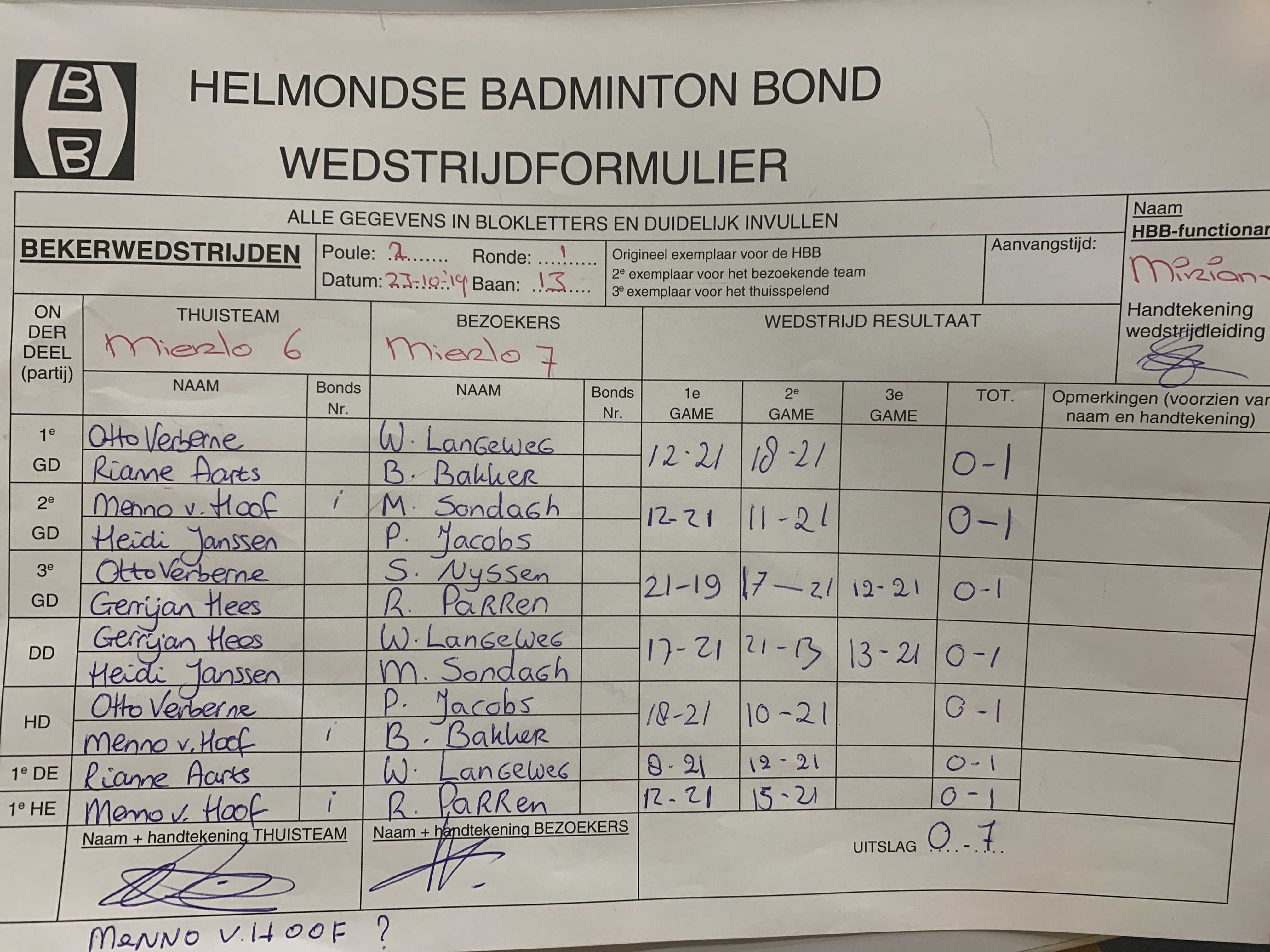 | 3022 | wo. 23-10-2019 | Mierlo 6 | - | Mierlo 7 | 13 | 0 - 7 | |||