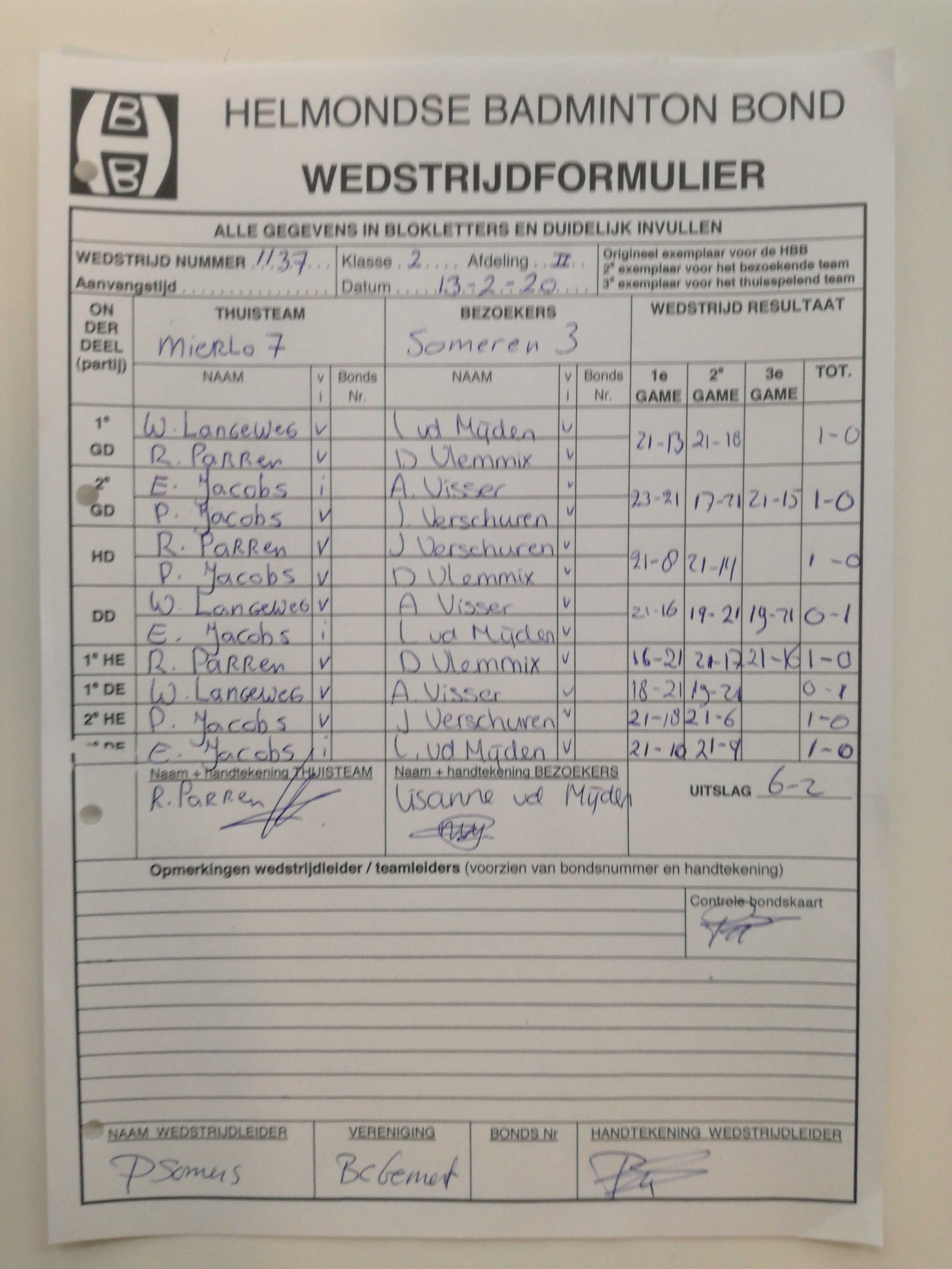 | 1137 | do. 13-02-2020 | Mierlo 7 | - | Someren 3 | 12 | 6 - 2 | |||