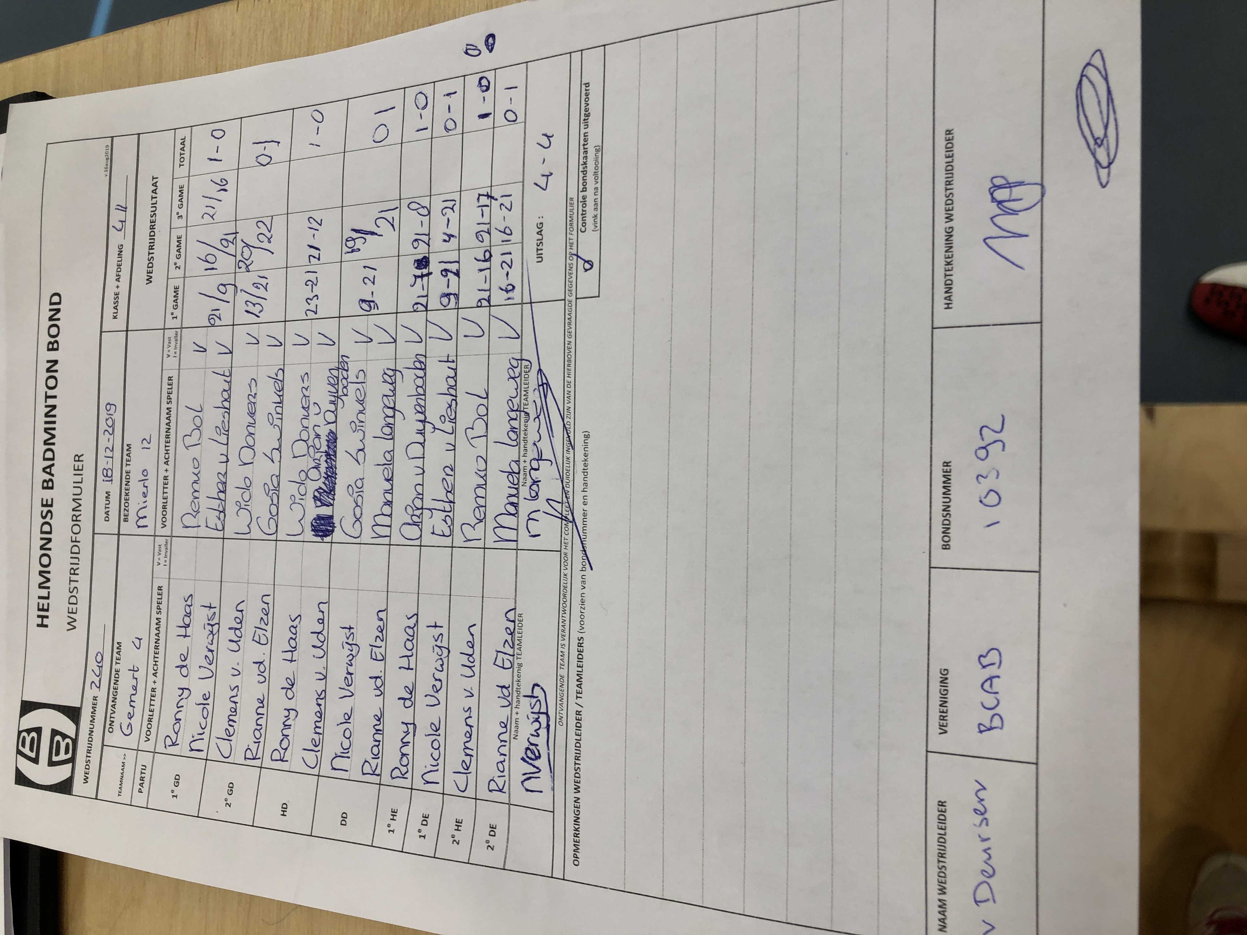 | 240 | wo. 18-12-2019 | Gemert 4 | - | Mierlo 12 | 5 | 4 - 4 | |||