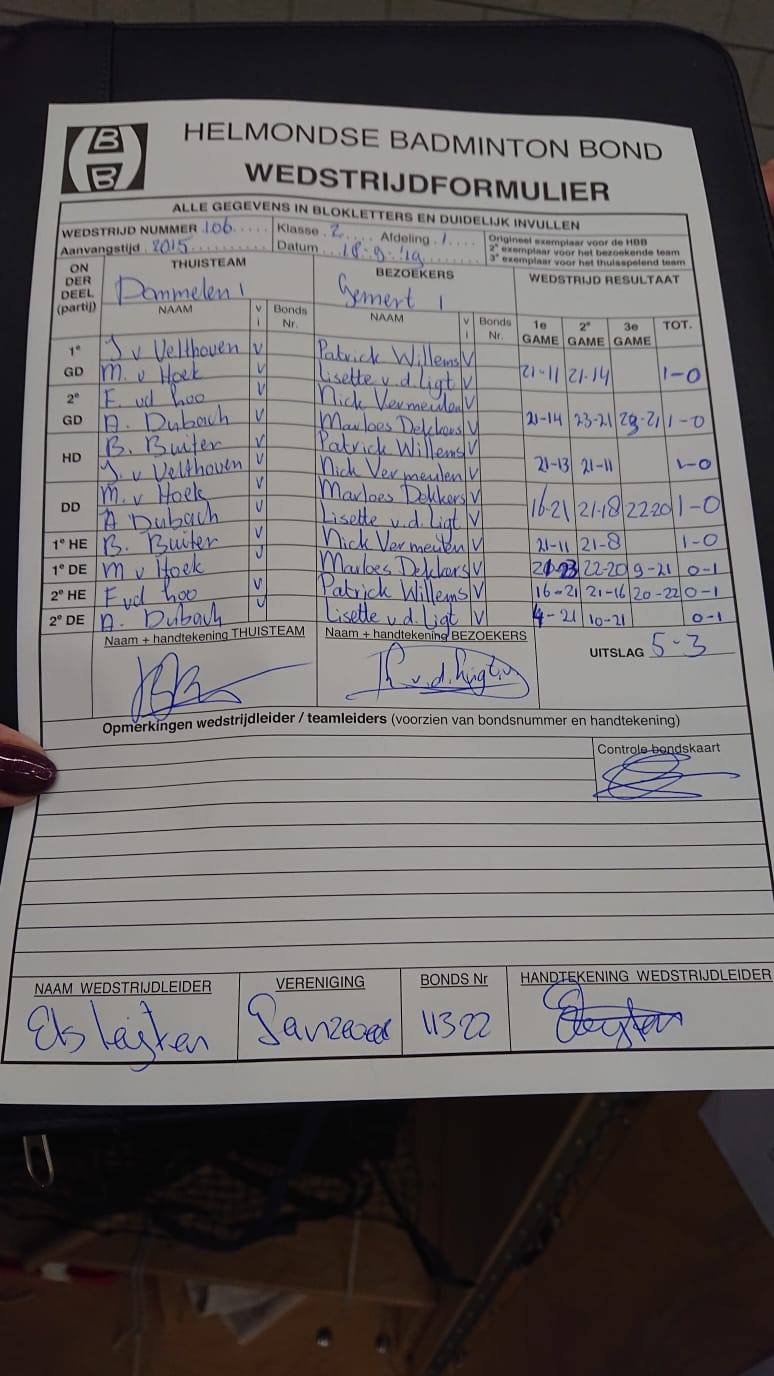| 106 | wo. 18-09-2019 | Dommelen 1 | - | Gemert 1 | 13 | 5 - 3 | |||