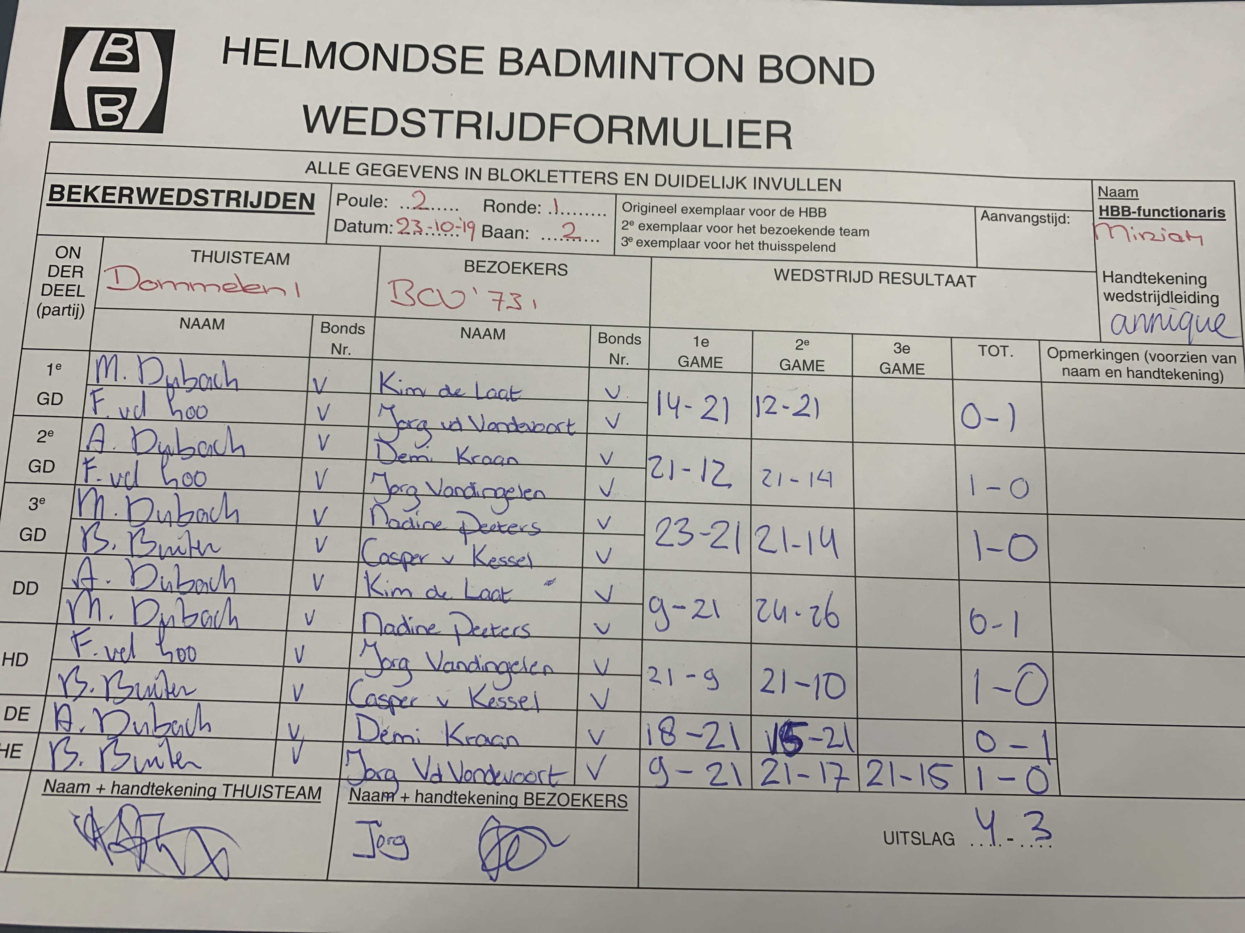 | 3016 | wo. 23-10-2019 | Dommelen 1 | - | BCV '73 1 | 2 | 4 - 3 | |||