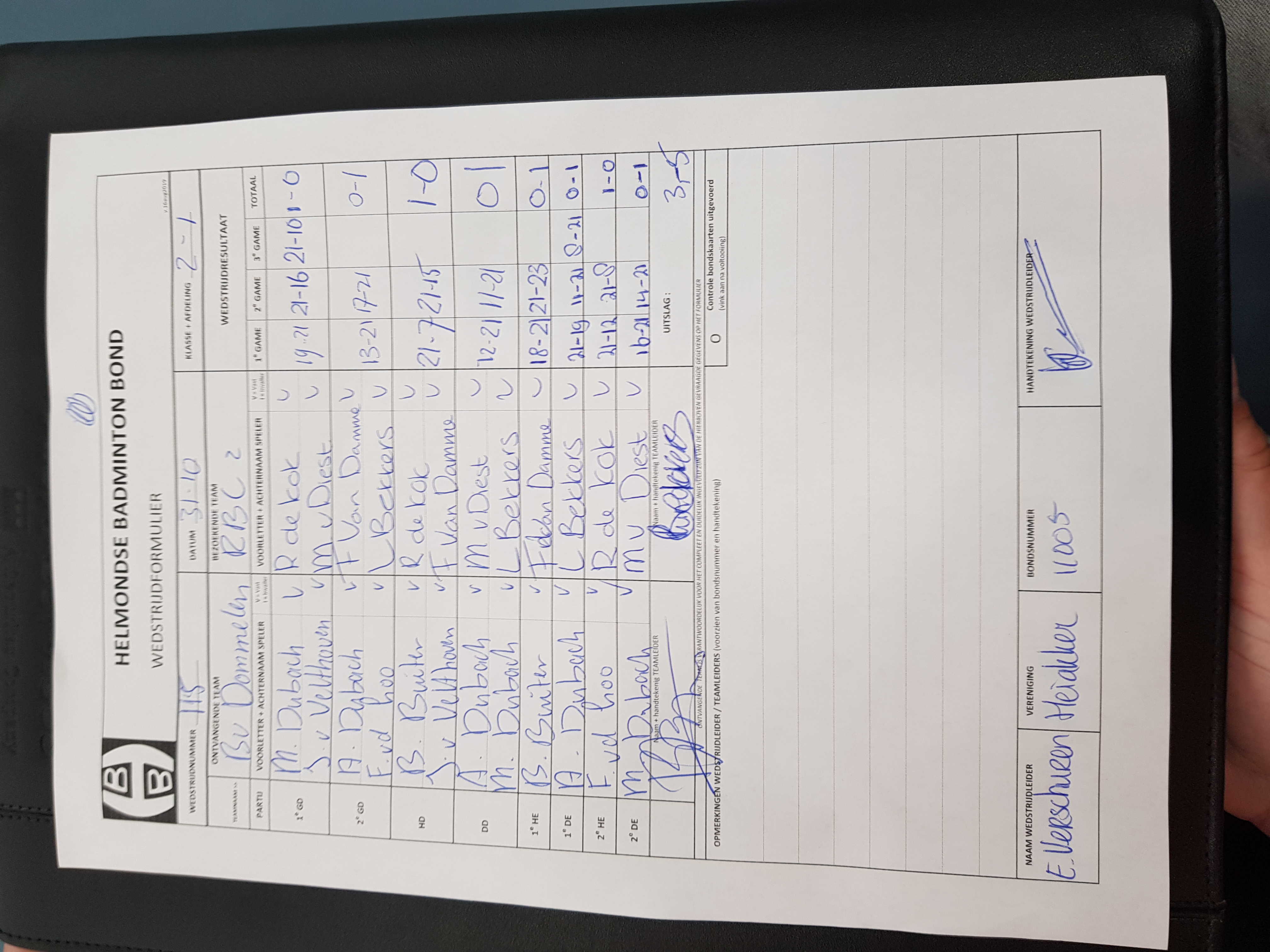 | 111 | wo. 02-10-2019 | Mixed 5 | - | Dommelen 1 | 13 | 4 - 4 | |||